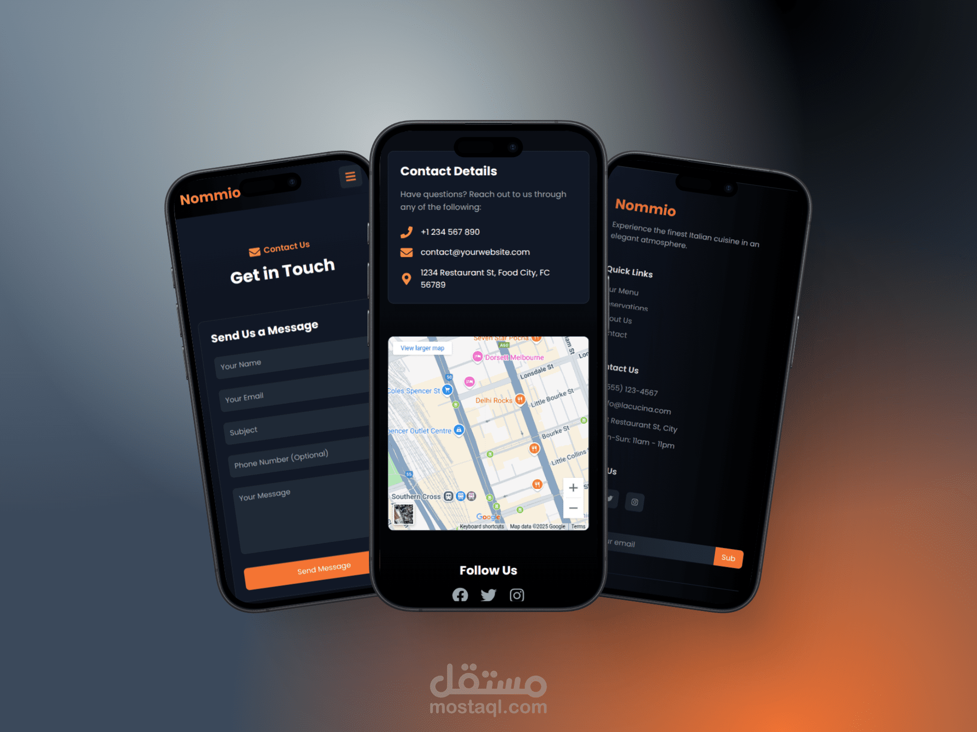 Nommio is a full-featured restaurant management platform supporting all operational aspects across multiple branches. The system provides specialized interfaces for administrators, managers, chefs, delivery personnel, and customers. It streamlines operations from order management to delivery tracking while ensuring secure transactions and real-time communication between all stakeholders.