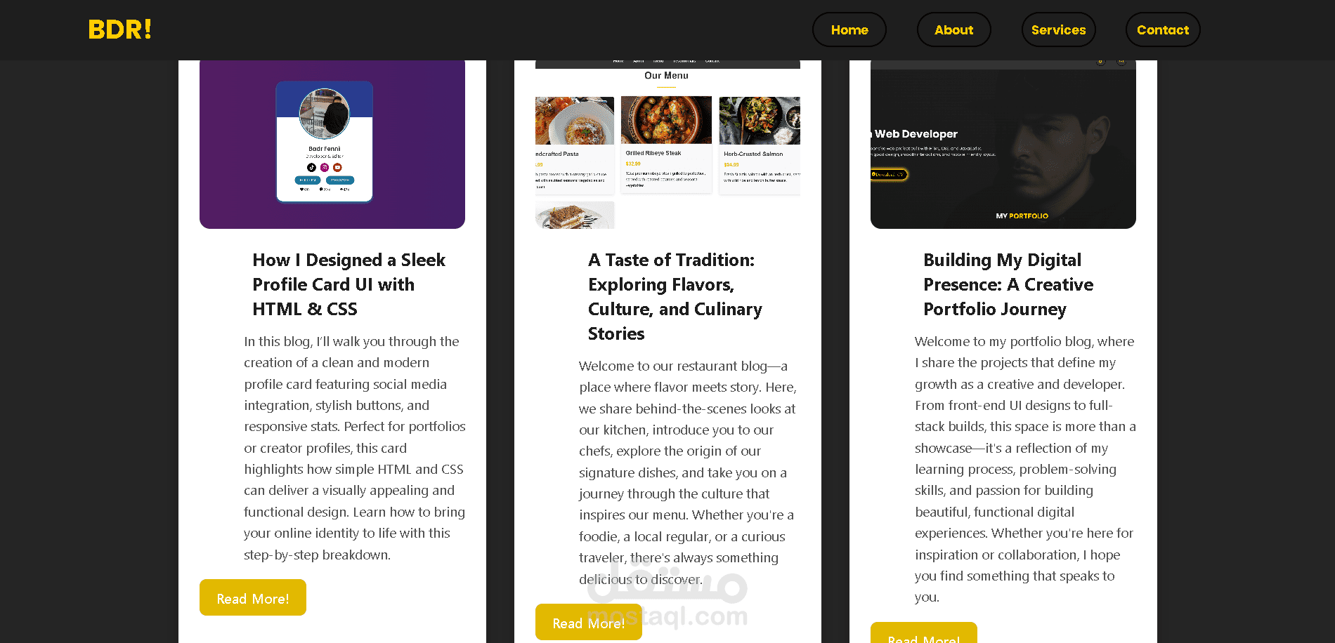 تم تصميم الموقع ليكون متجاوبًا مع جميع الأجهزة، وسهل التصفح، مع واجهة جذابة تركز على إبراز أعمالي بشكل واضح وجميل. يعتمد الموقع على أحدث التقنيات لضمان سرعة الأداء وتجربة مستخدم سلسة، مما يعكس جودة العمل والاحترافية.