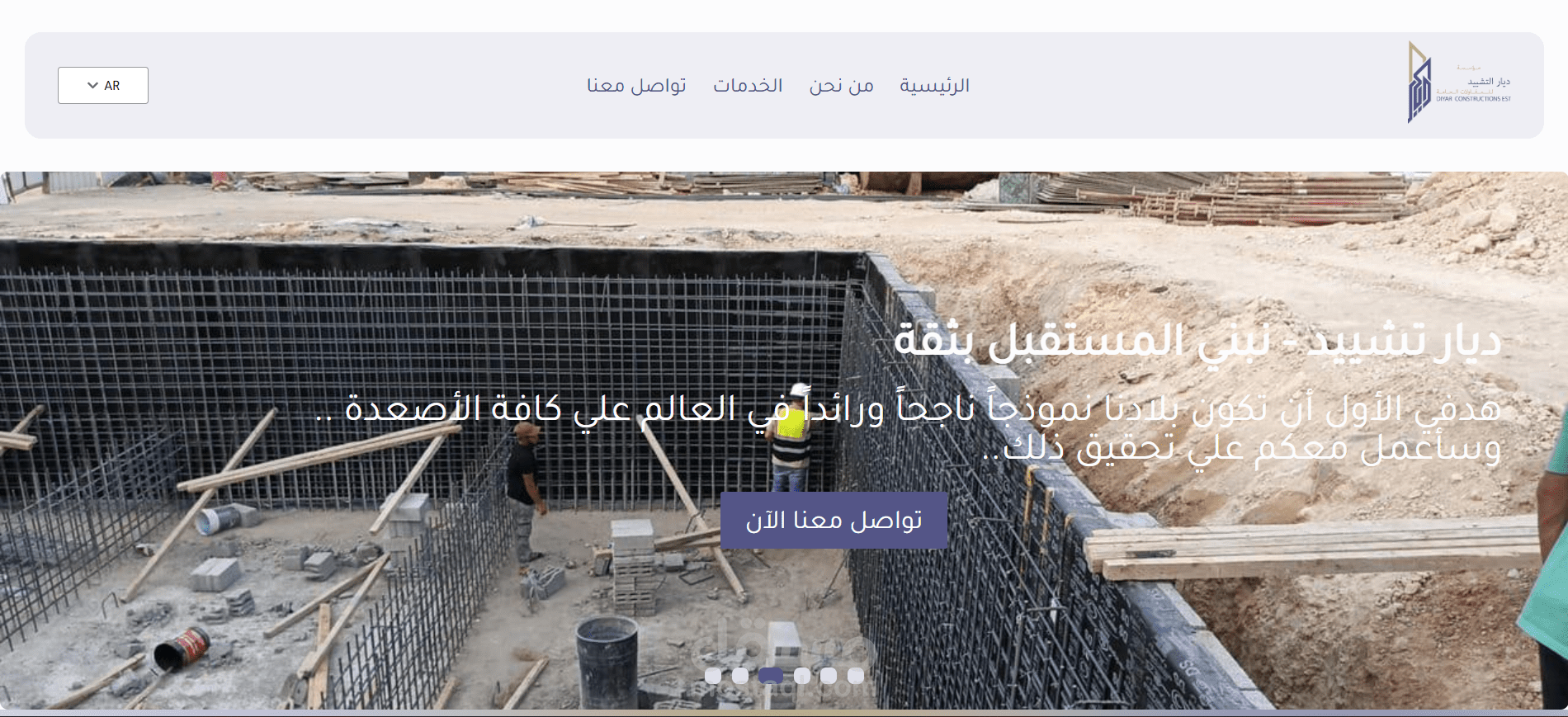 قمت بتصميم وتطوير صفحة هبوط احترافية لمؤسسة ديار التشييد، وهي مؤسسة وطنية سعودية رائدة في مجال المقاولات والتشييد، تأسست عام 1428هـ وتقع في مكة المكرمة.