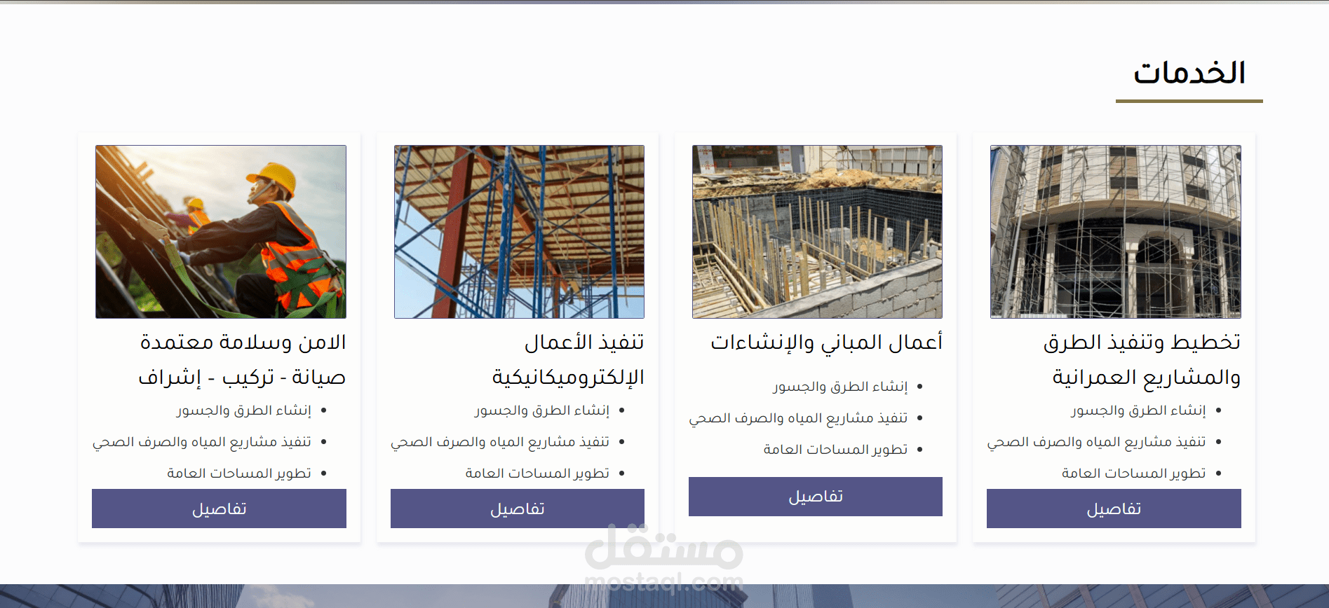 قائمة تنقل واضحة تتضمن: الرئيسية، من نحن، الخدمات، تواصل معنا.