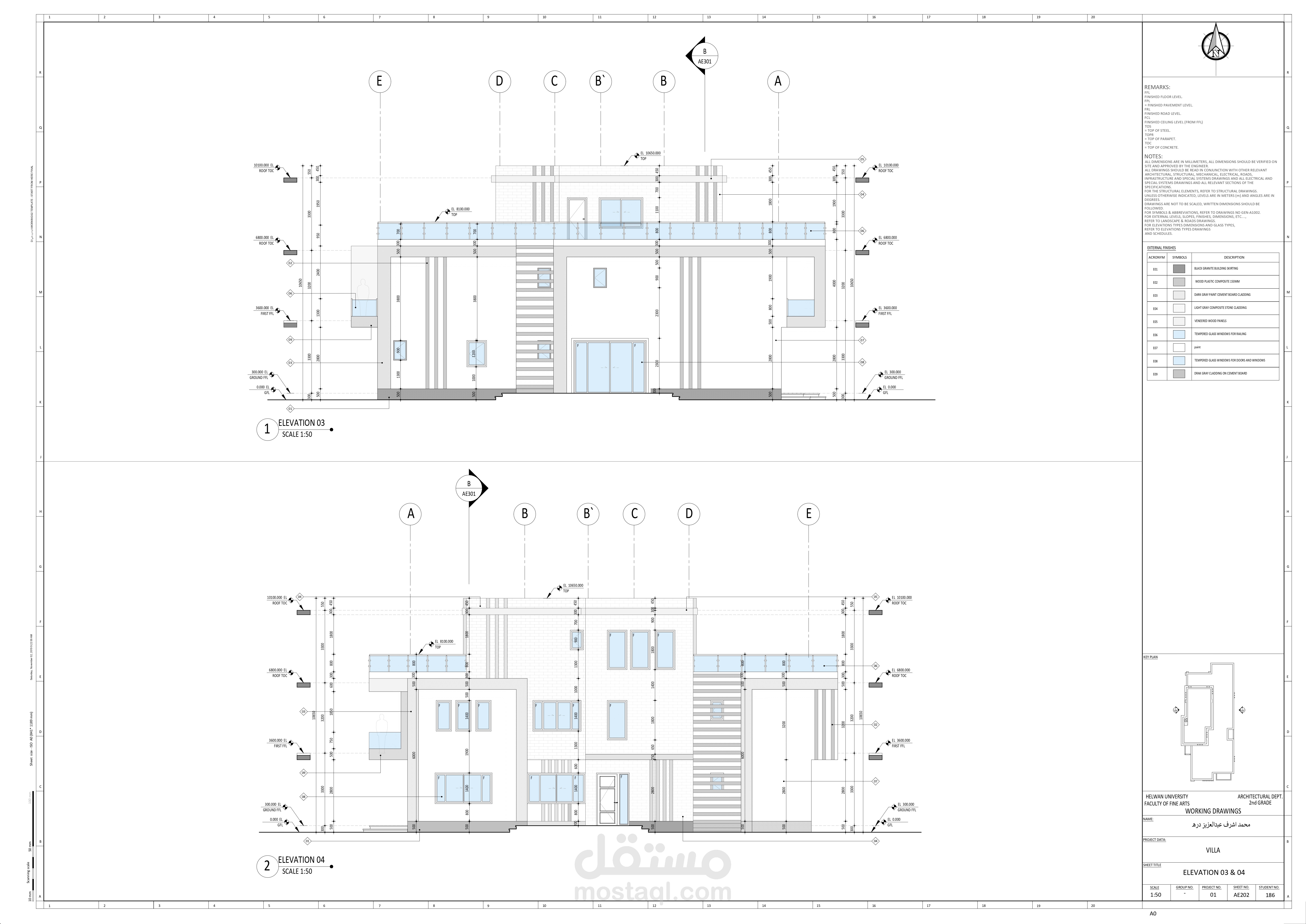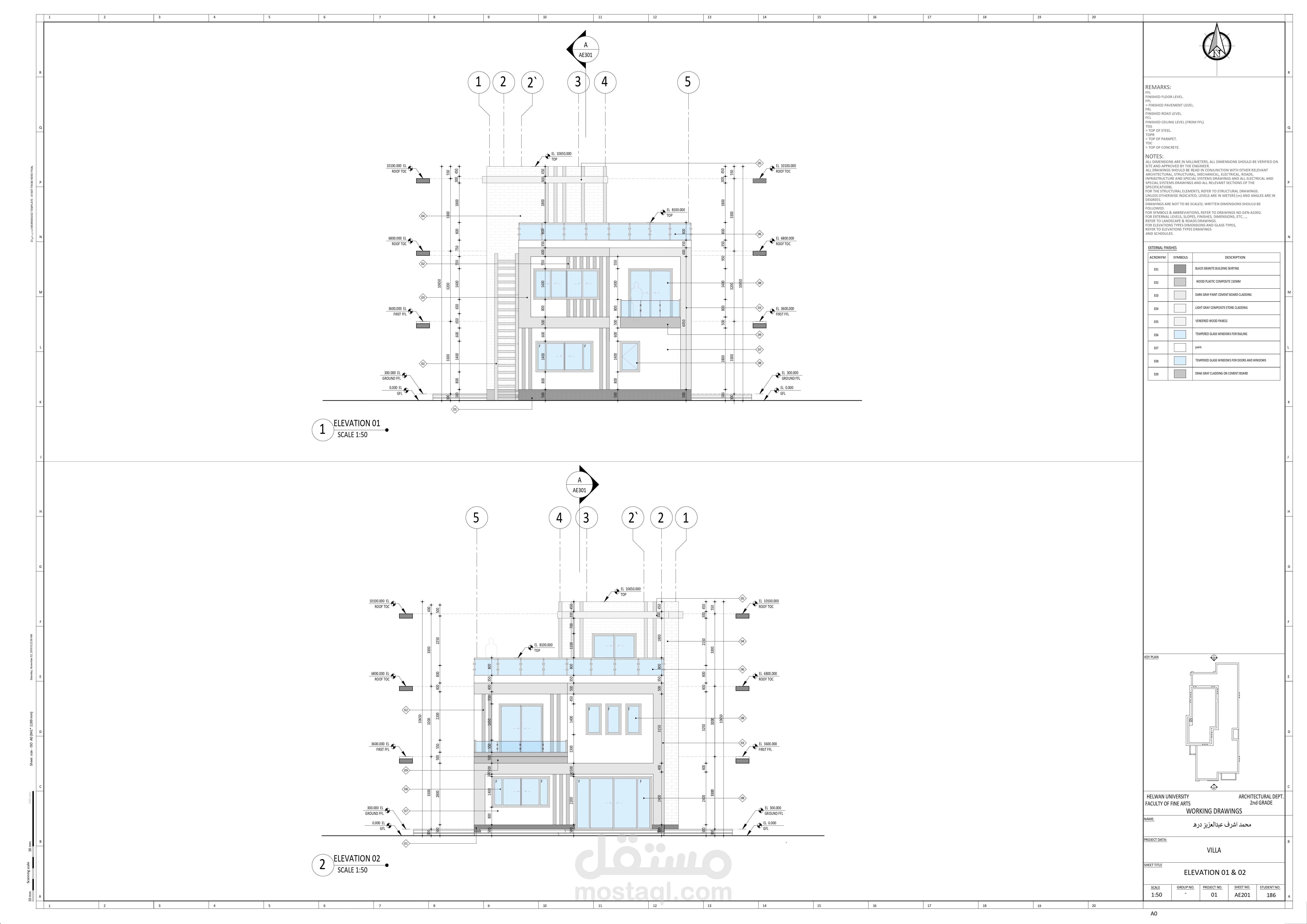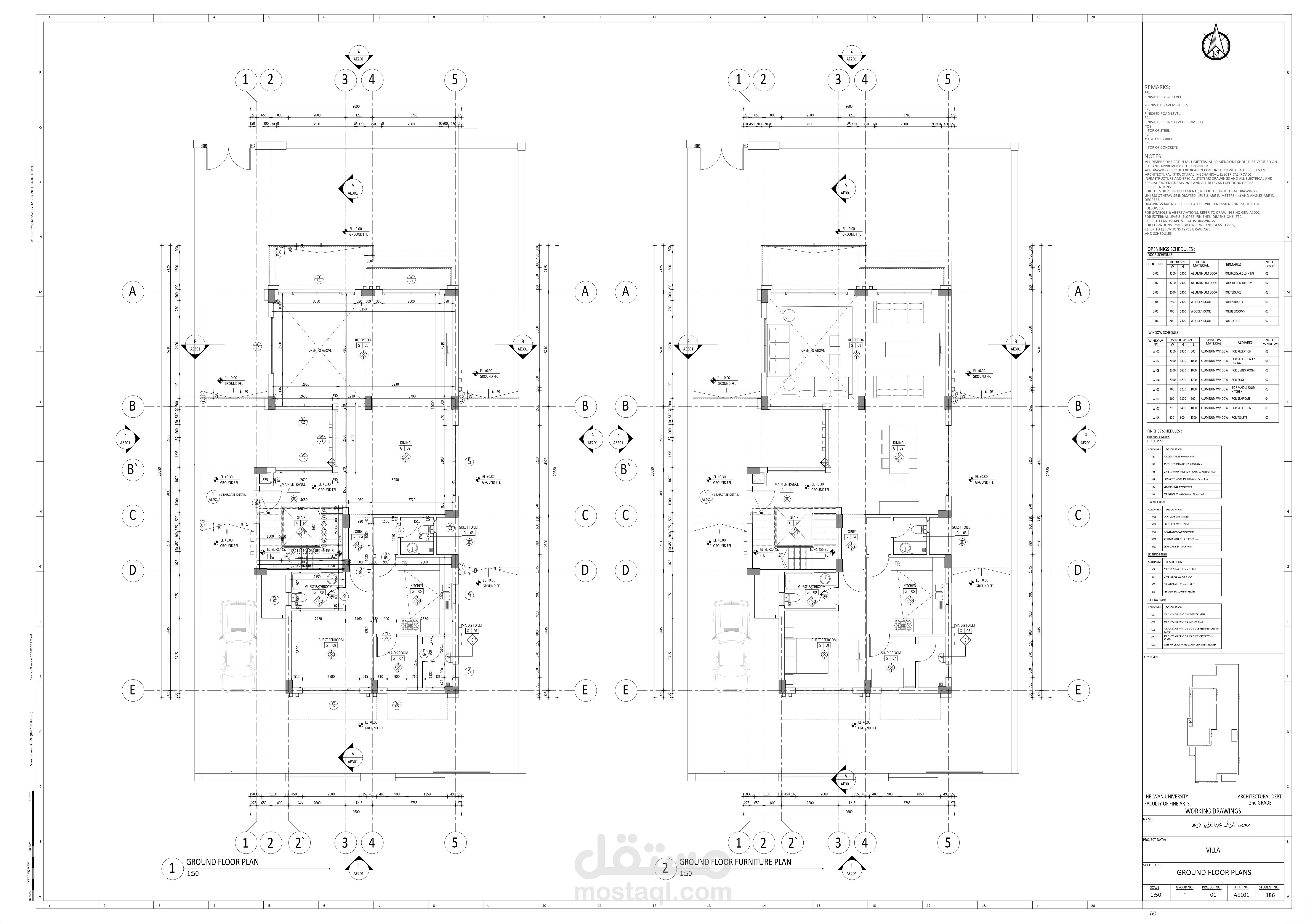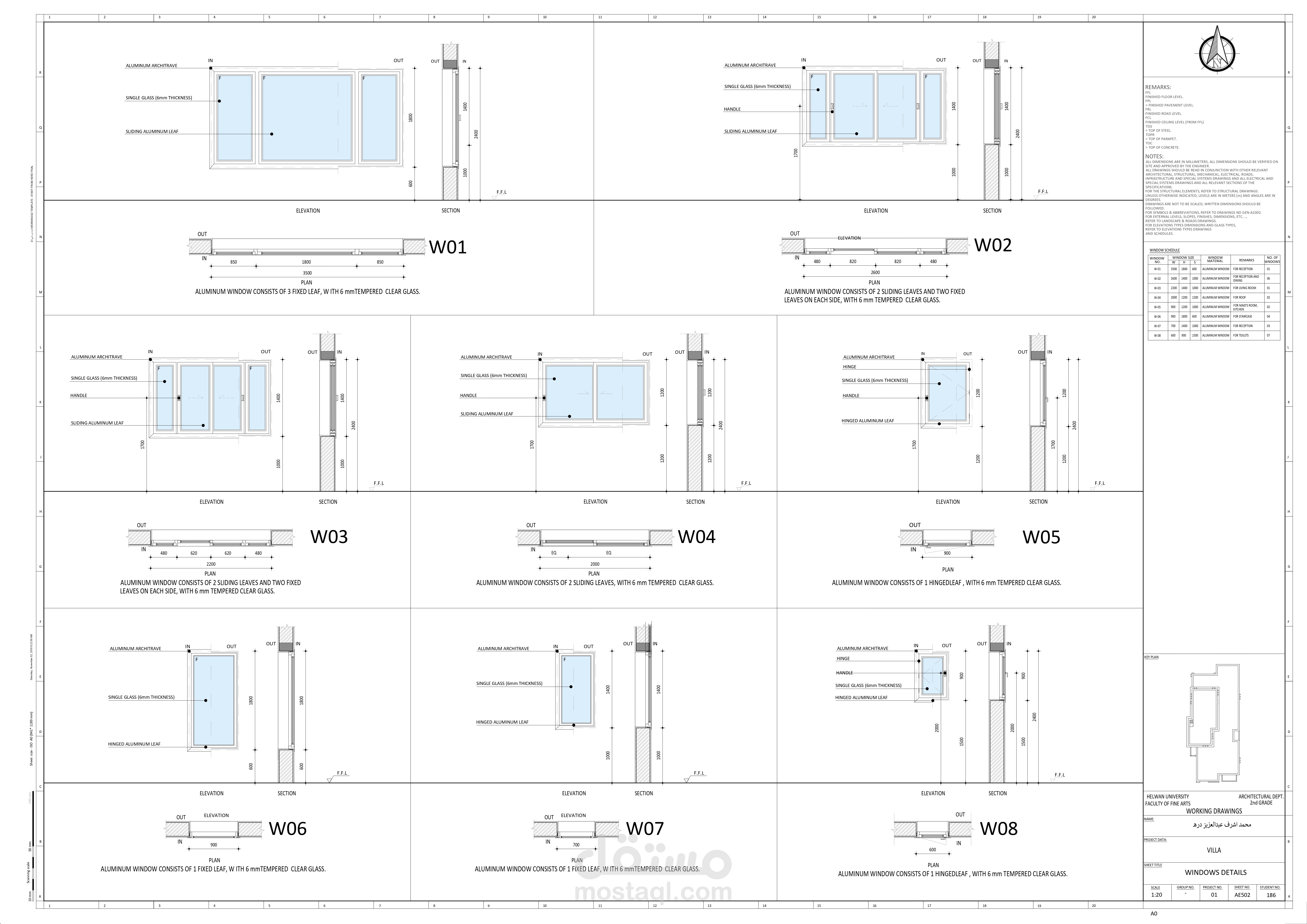 يتضمن المشروع مجموعة شاملة من اللوحات التنفيذية تغطى جميع الجوانب المعمارية و التفصيلية من المبنى منها:
