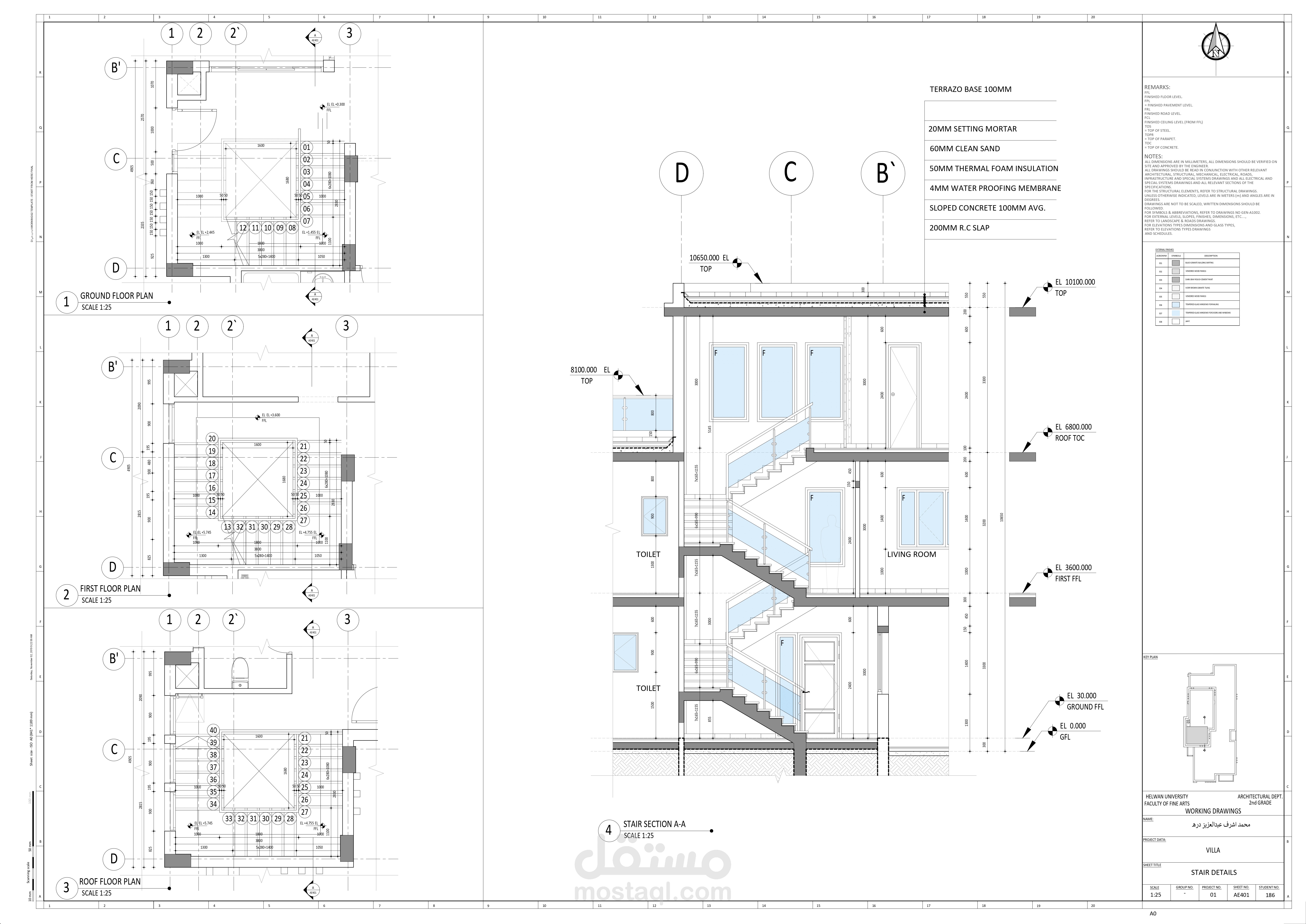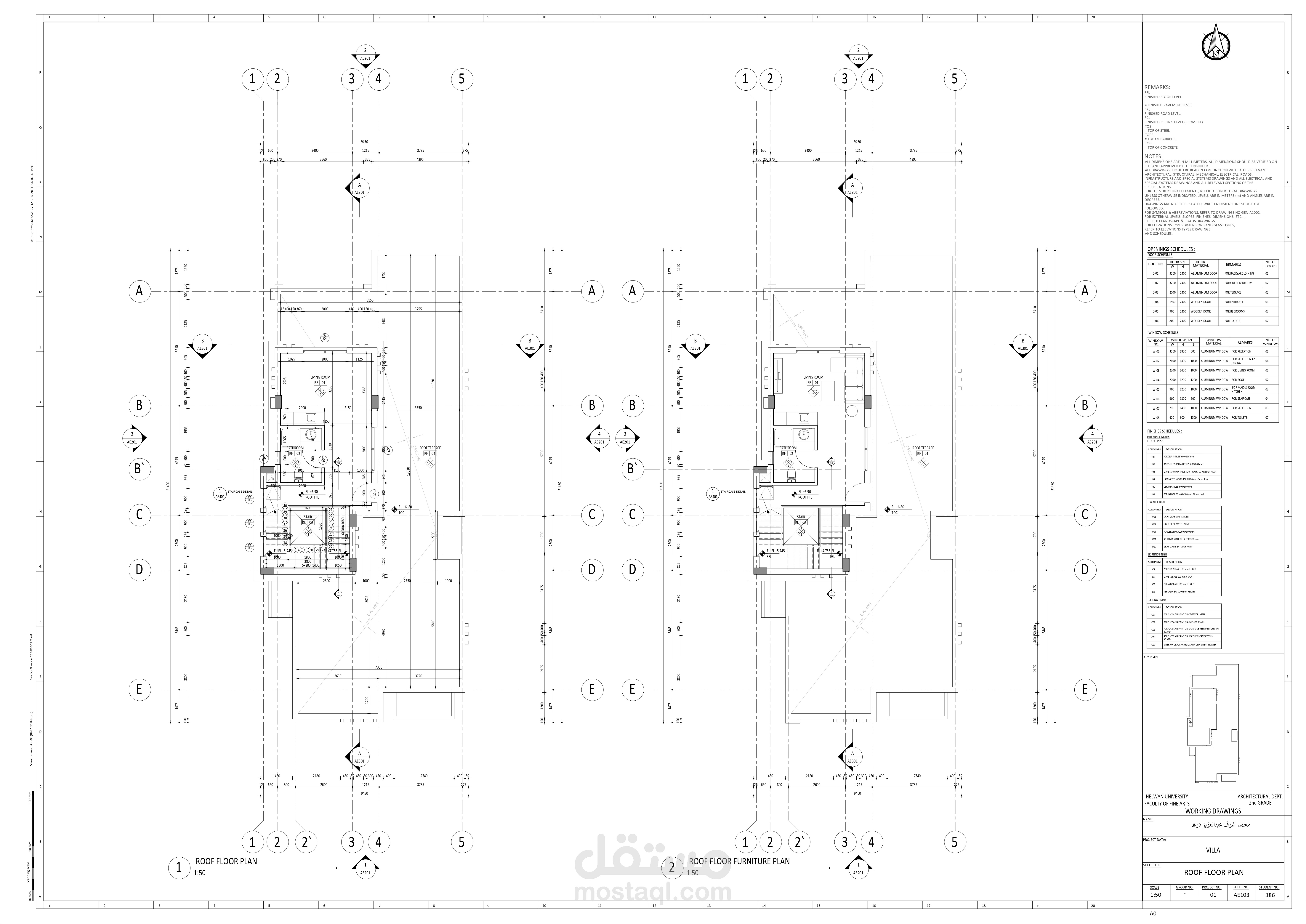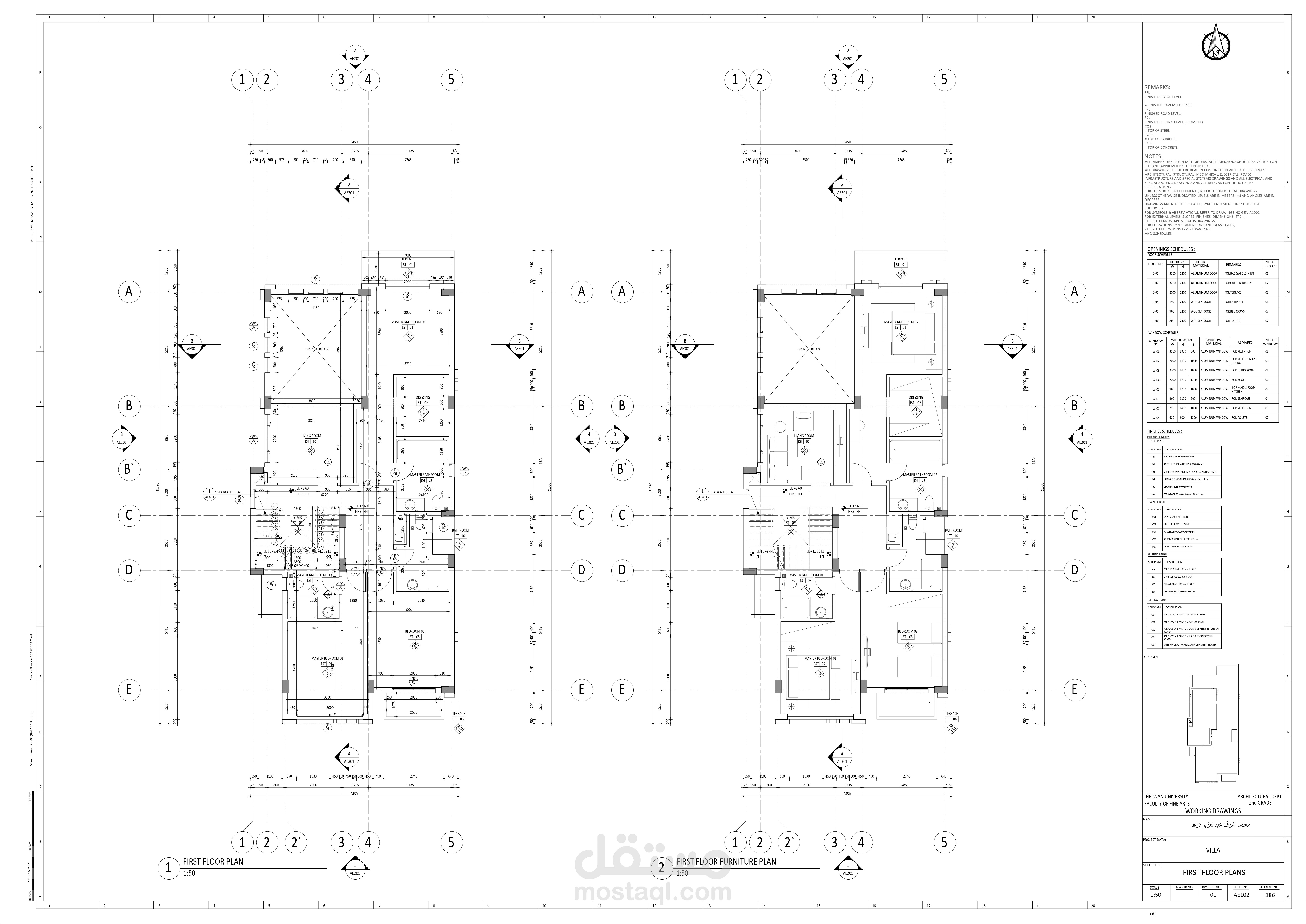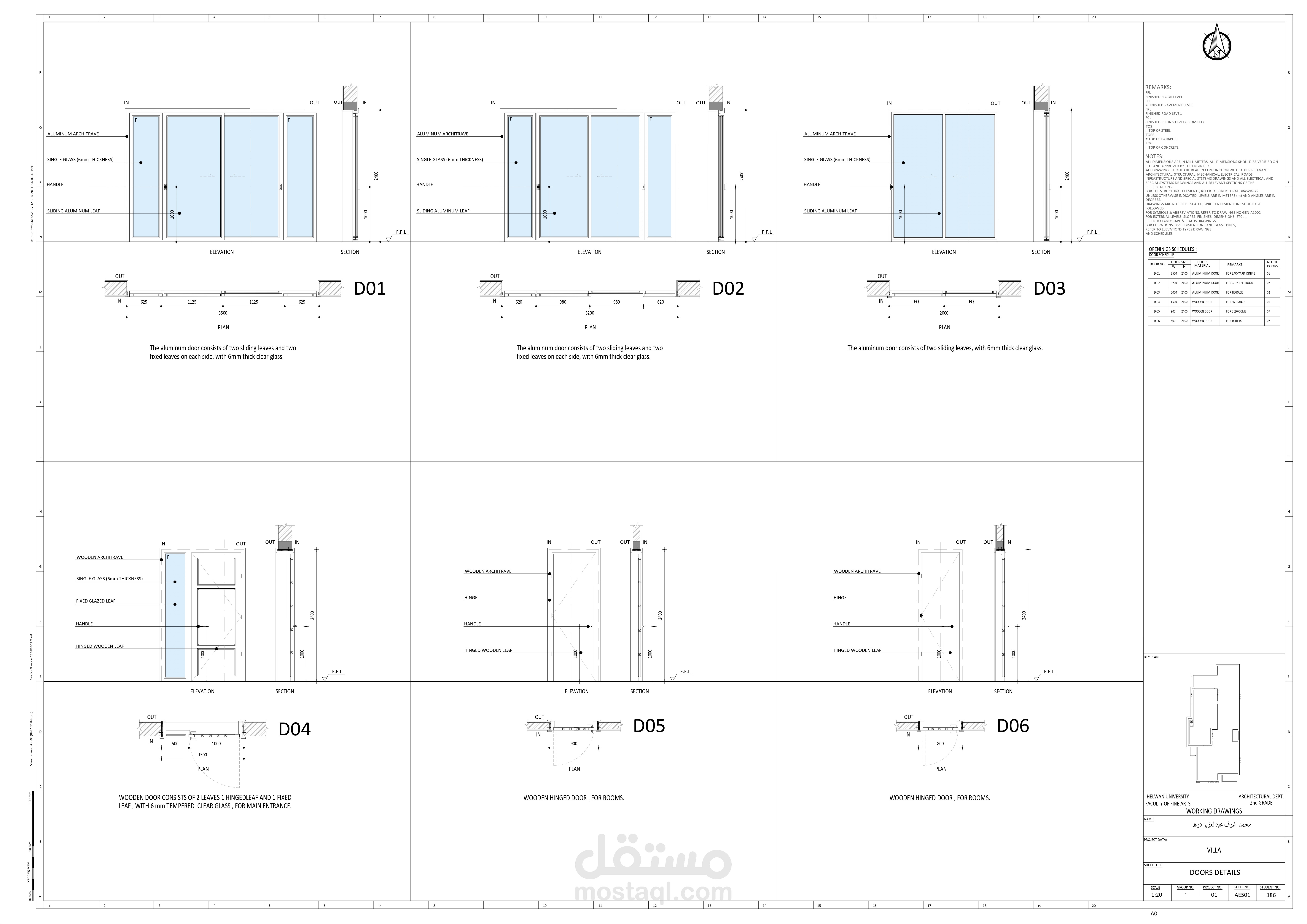 يتضمن المشروع مجموعة شاملة من اللوحات التنفيذية تغطى جميع الجوانب المعمارية و التفصيلية من المبنى منها: