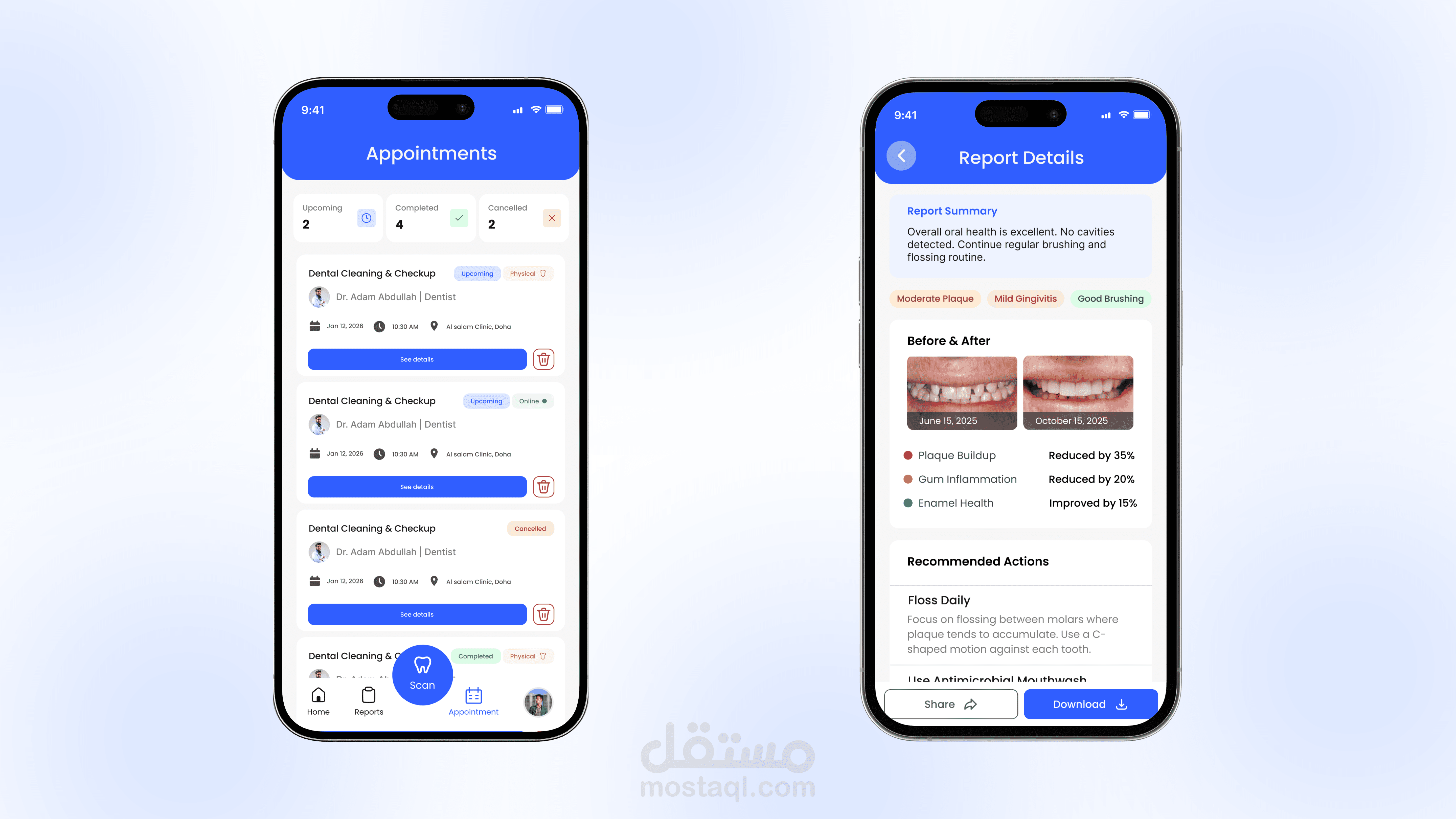 تطبيق جوال يساعد المستخدم على تتبع صحة فمه وحجز موعد مع طبيب الأسنان ورؤية التفاصيل والرؤى