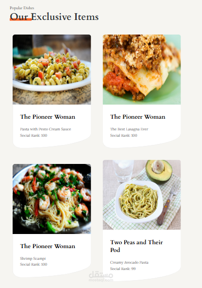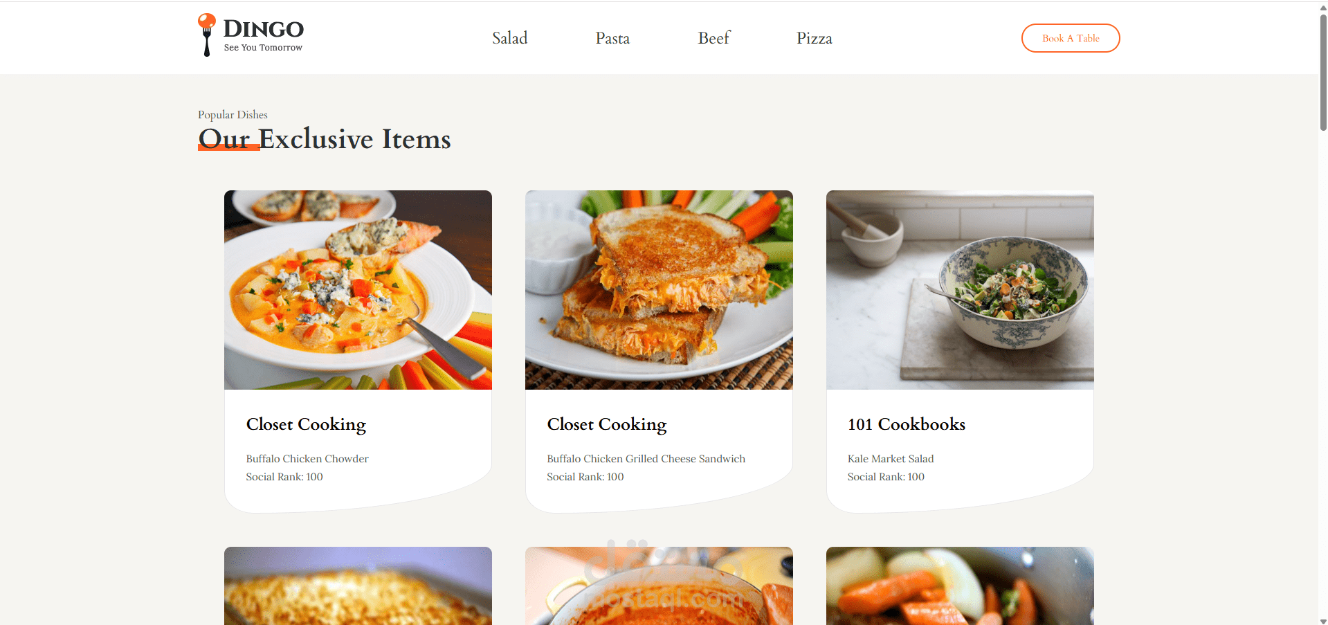 مطعم مميز يعرض الوجبات و مكونات كل وجبه