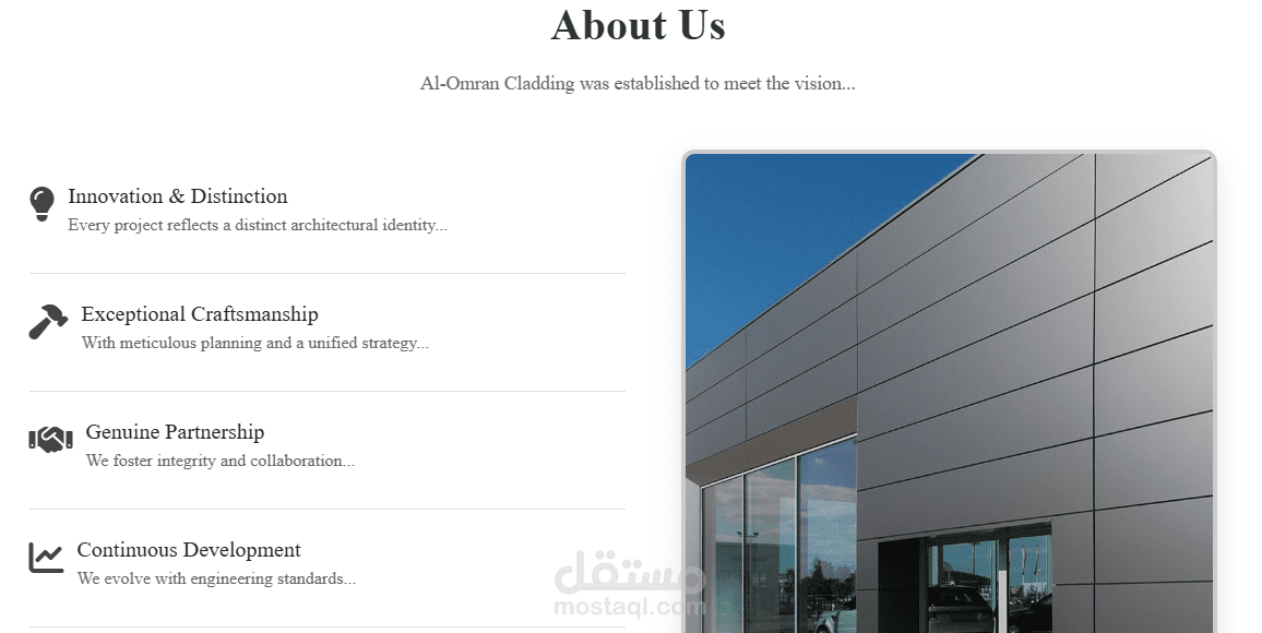 Al Omran Cladding is a leading provider of innovative Alucobond cladding solutions in the construction industry. Our website showcases the company's core values, expert workflow, and top-tier services in transforming building exteriors with precision and durability.