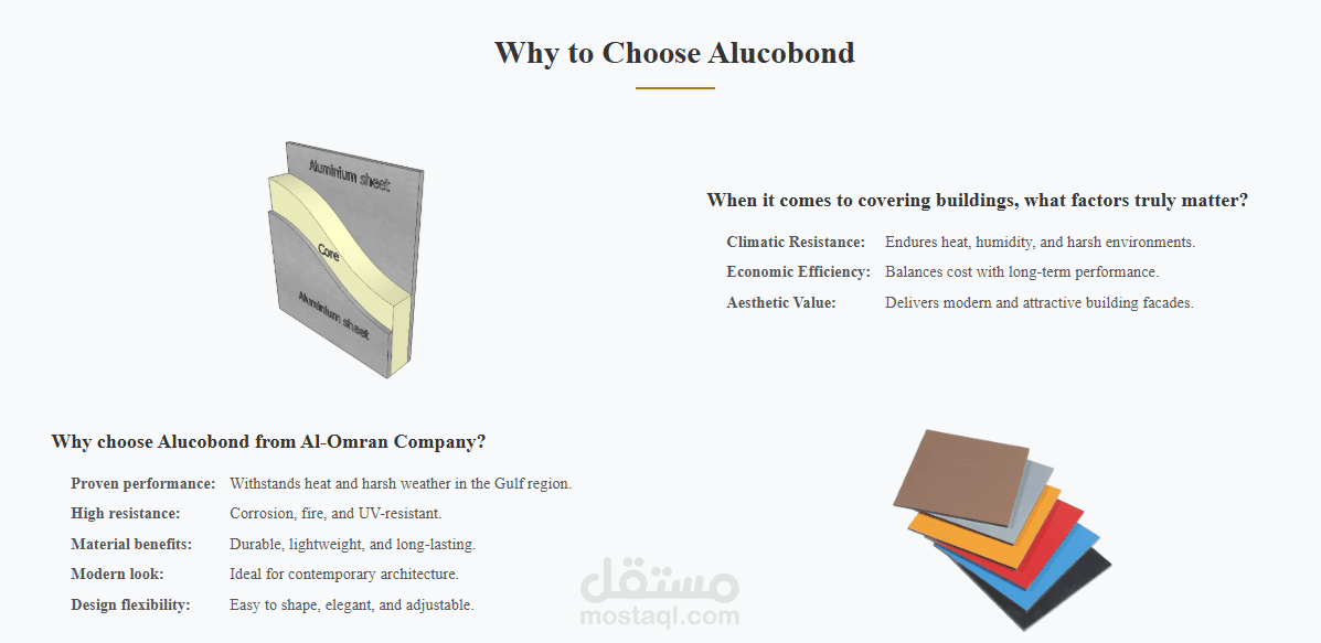 A "Why Alucobond" segment educating clients on the material’s benefits.
