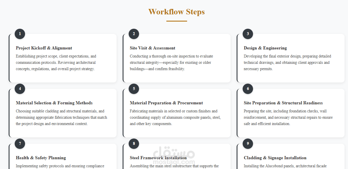A visual walkthrough of our 12-step workflow for cladding projects.