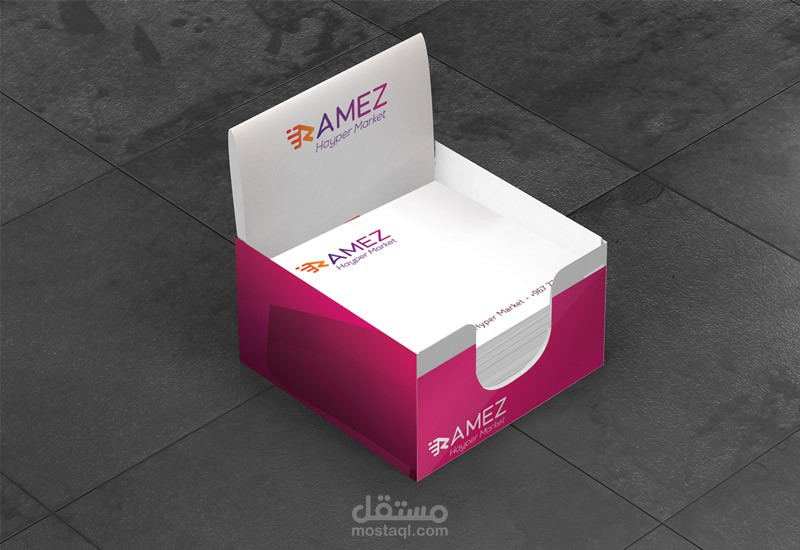 تصميم شعار لهيبرماركت رامز مع عرض الشعار على عناصر للهوية ..