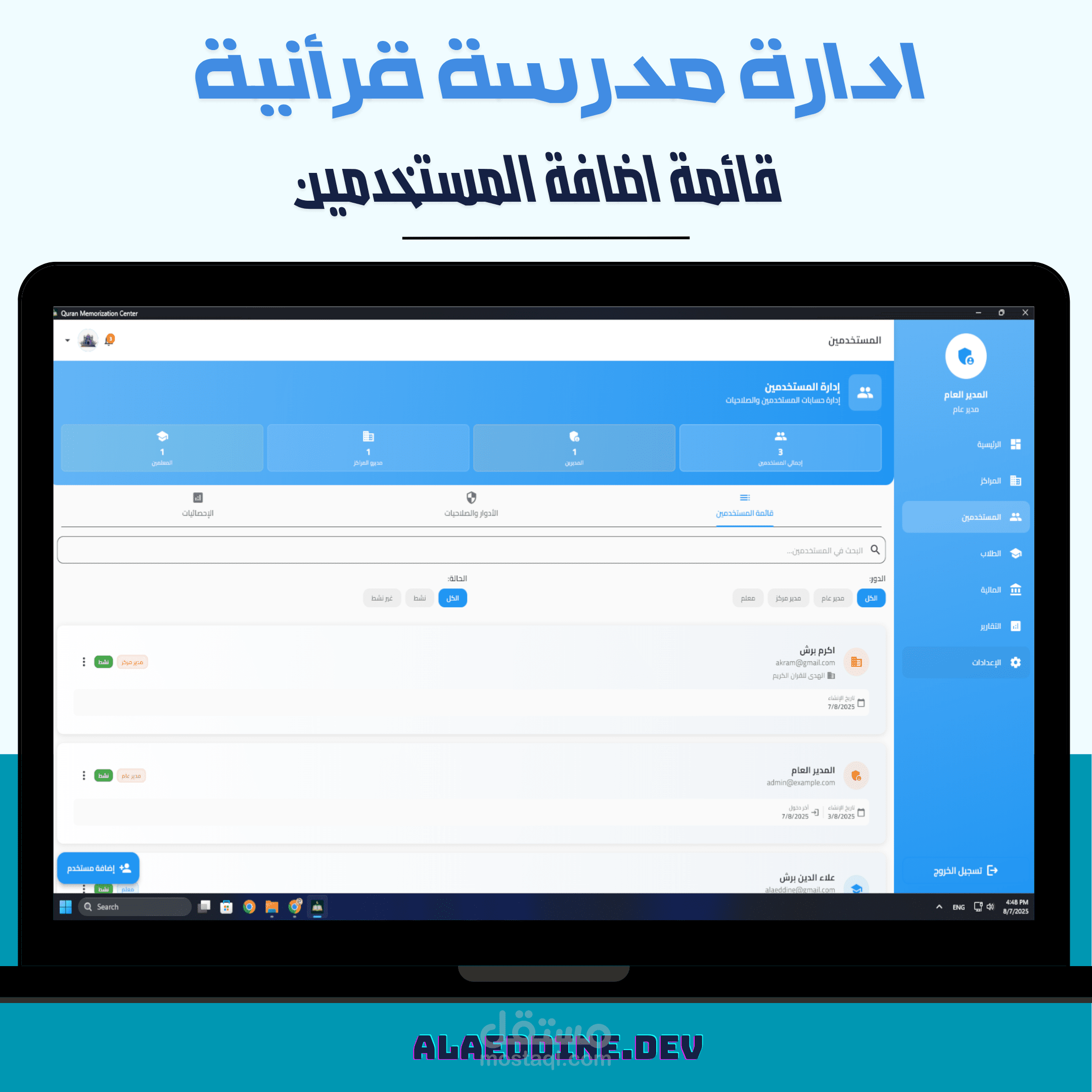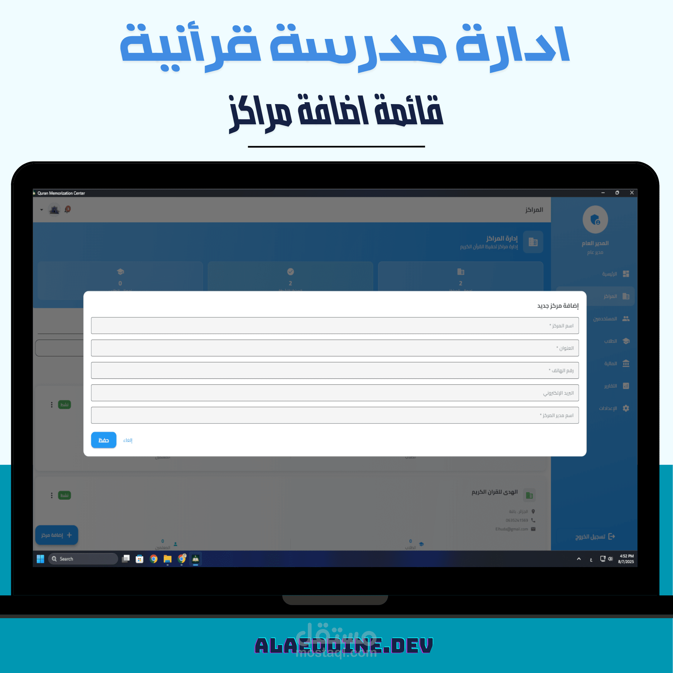 مركز تحفيظ القرآن الكريم - نظام إدارة شامل