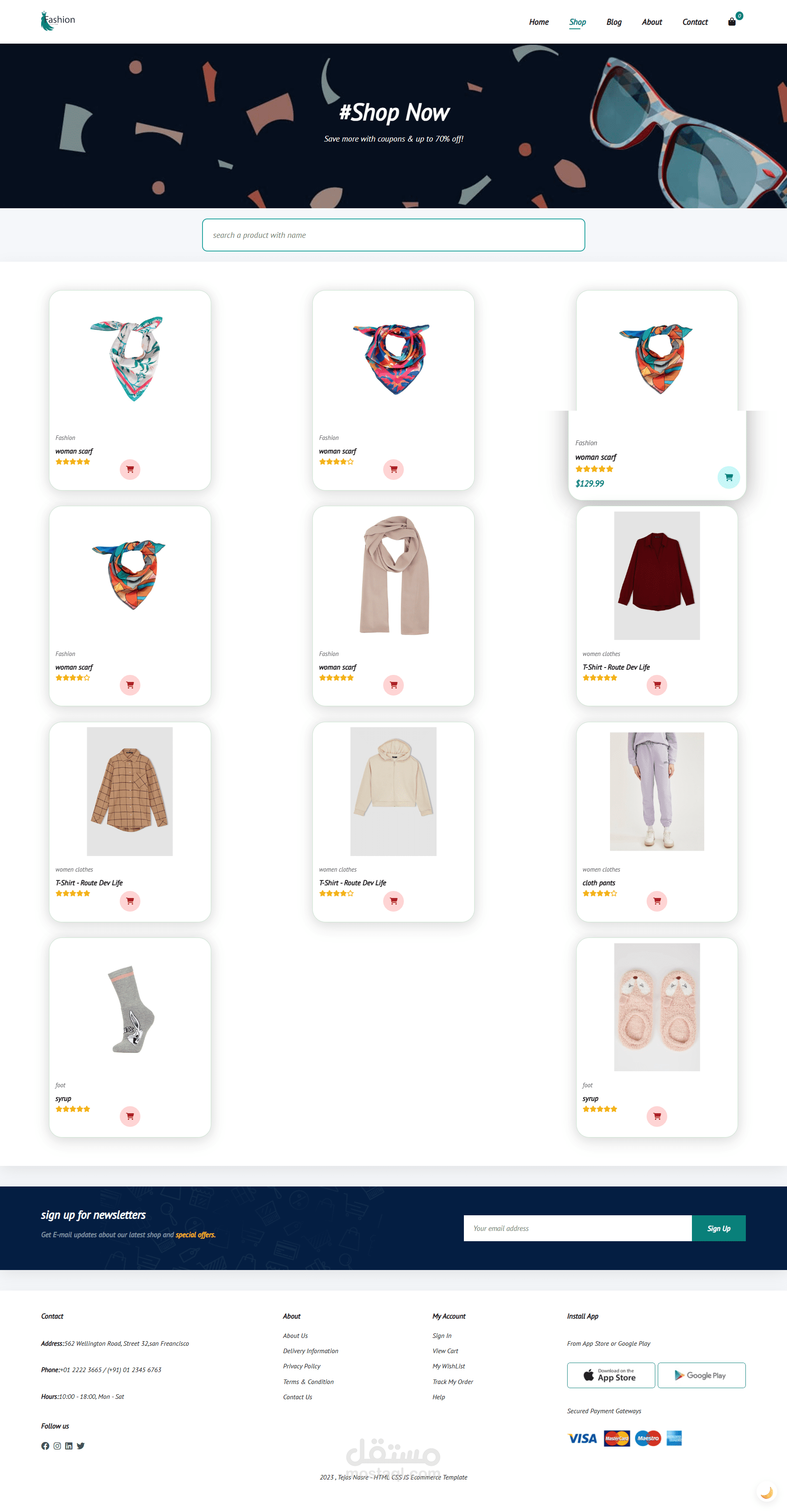 قمت بتصميم وتطوير موقع متجر إلكتروني متكامل بواجهة عصرية ومتجاوبة تعمل على جميع الأجهزة.