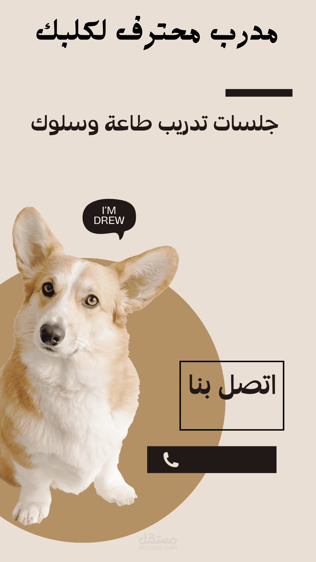 في هذا المشروع قمت بتصميم إعلان بصري جذاب للترويج لخدمة تدريب الكلاب، يركز على جلسات الطاعة وتعديل السلوك.