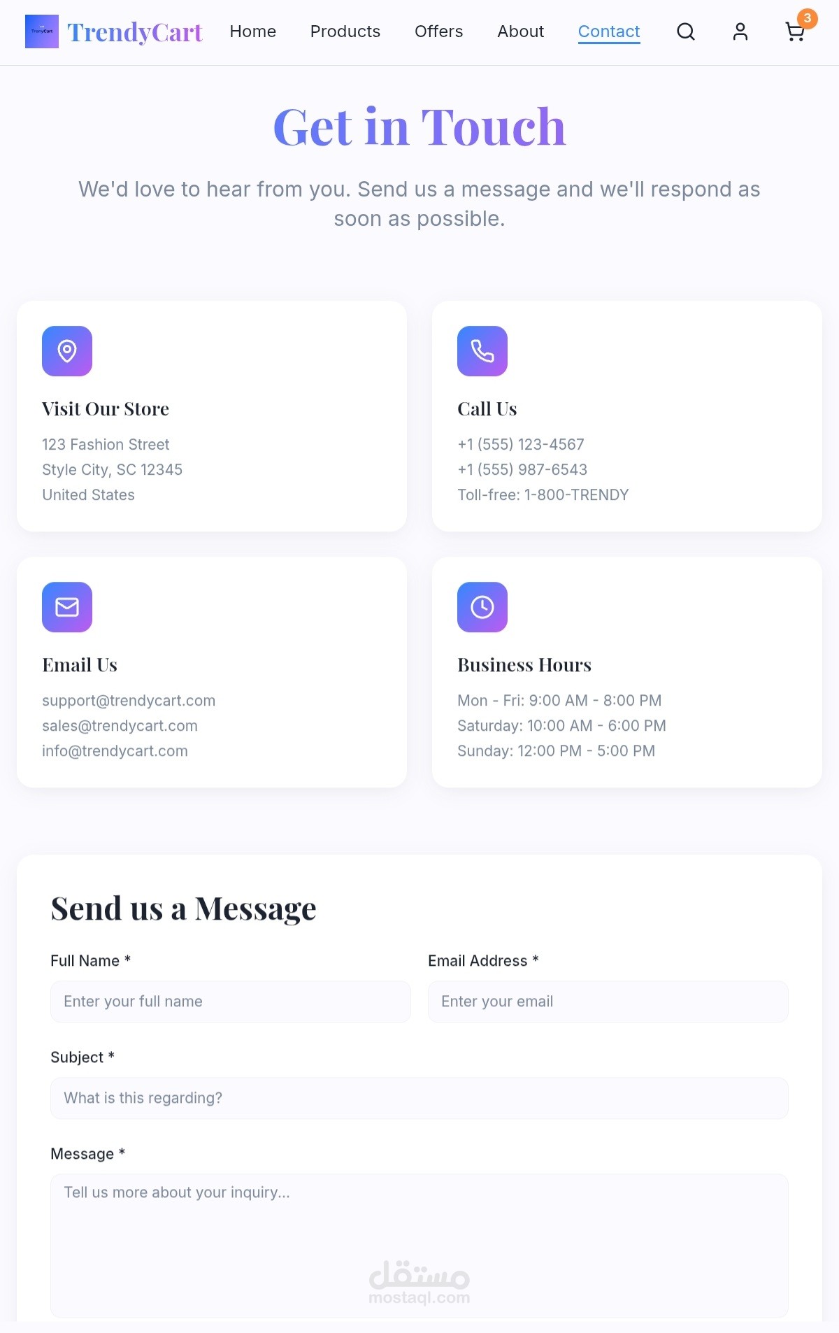 Trendy Cart is a modern and user-friendly e-commerce platform designed for a seamless shopping experience. Featuring a stylish interface, smooth navigation, and secure checkout, it offers a wide range of products with vibrant images and detailed descriptions to make your online shopping both