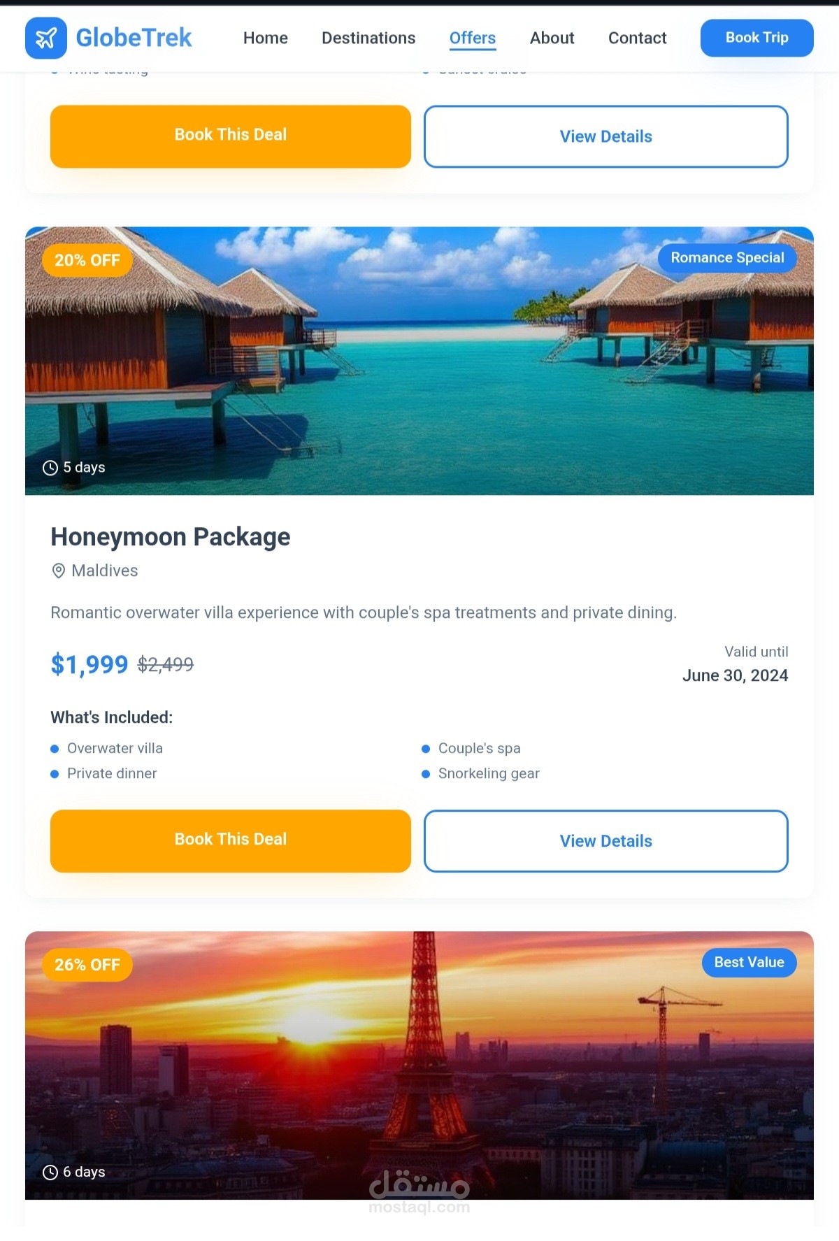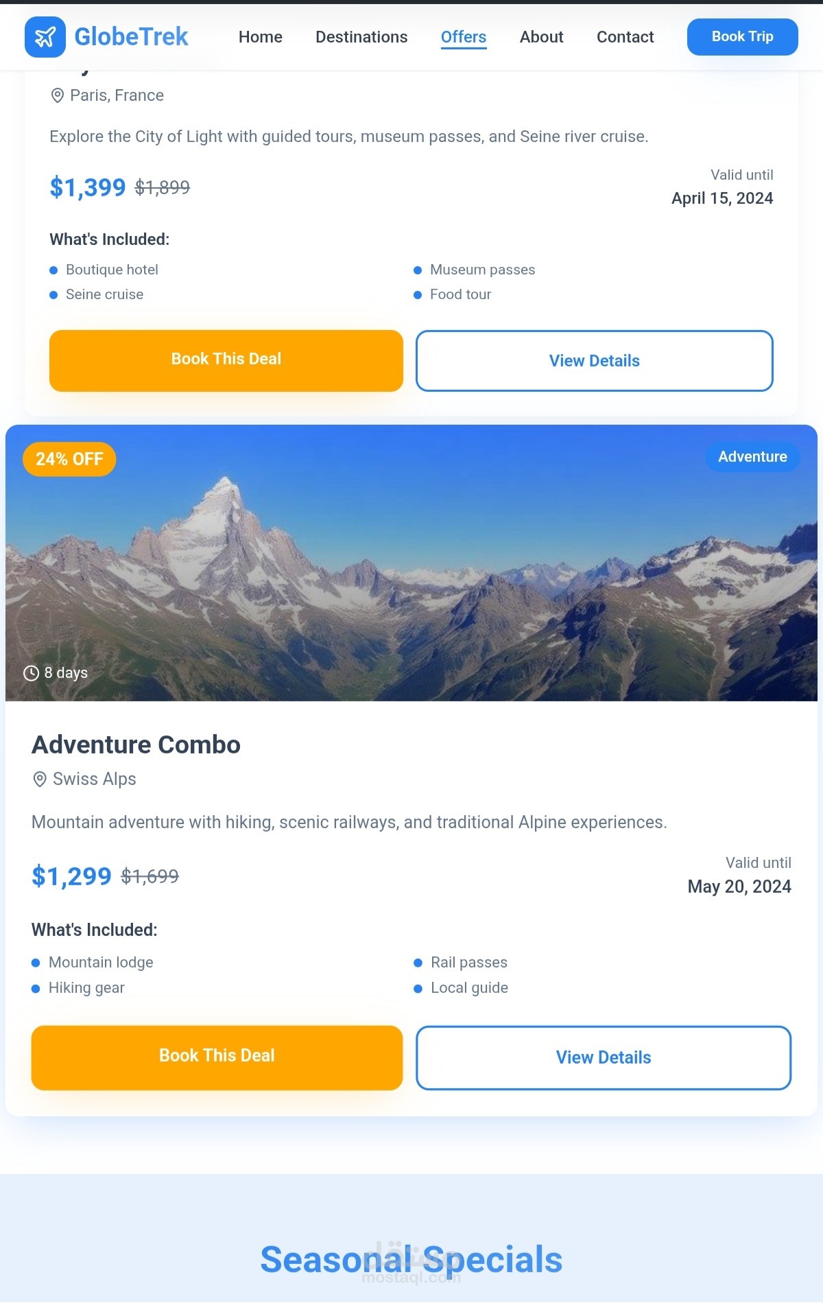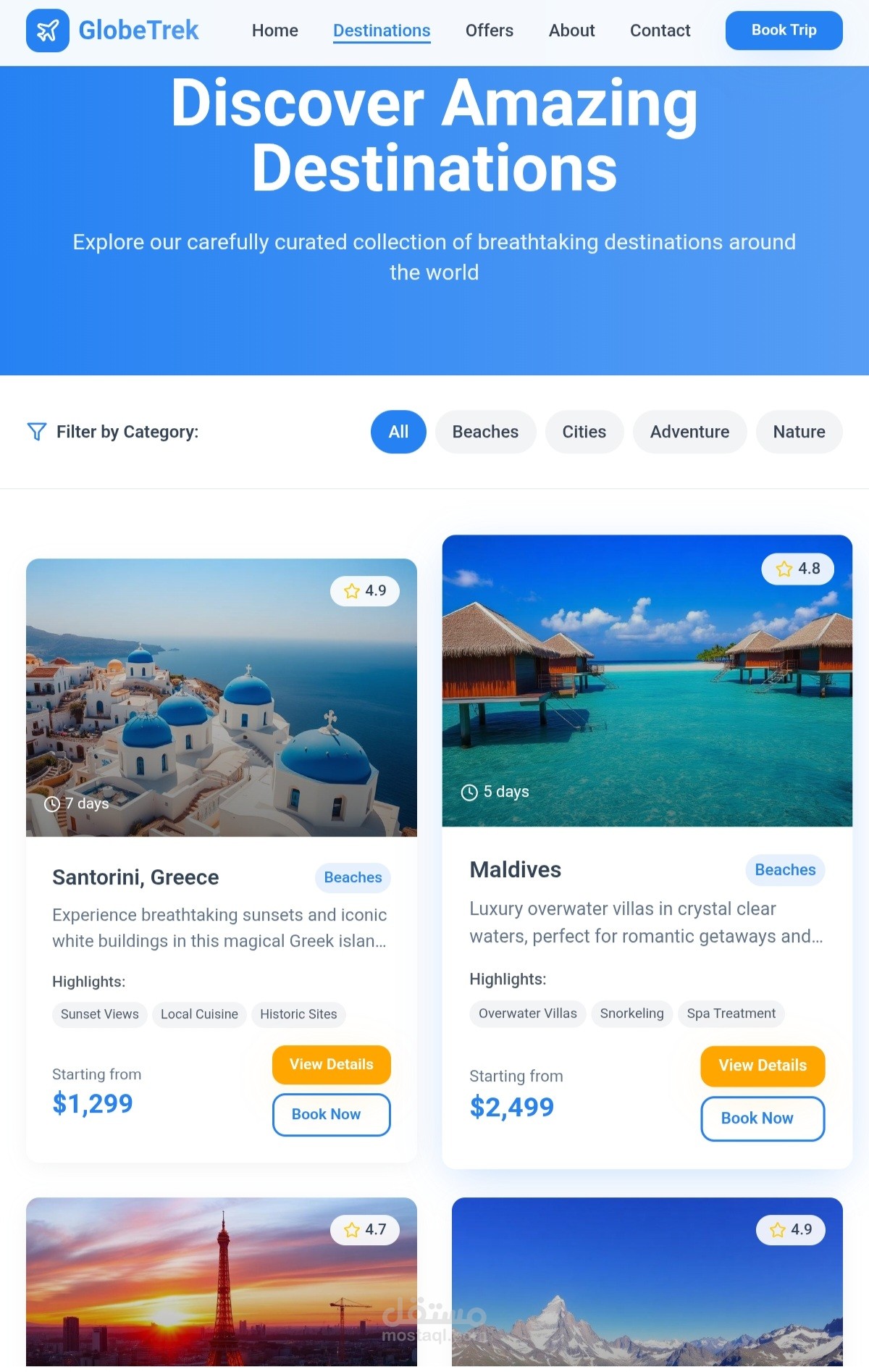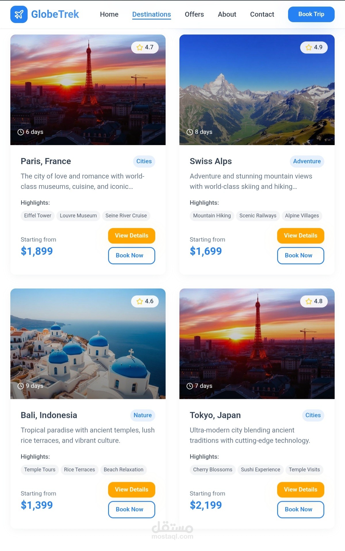 An elegant and engaging travel booking platform that helps you discover breathtaking destinations, book curated tours, and plan your trips effortlessly. Featuring harmonious colors, smooth navigation, and inspiring visuals to fuel your wanderlust.