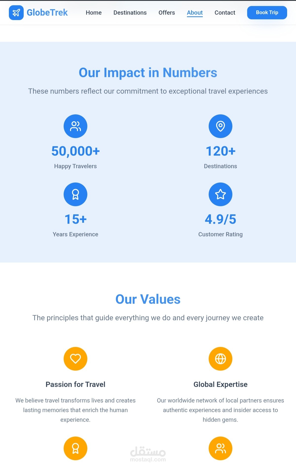 منصة حجز رحلات أنيقة وجذابة تساعدك على اكتشاف وجهات خلابة، وحجز جولات مختارة، وتخطيط رحلاتك بسهولة. تتميز بألوان متناغمة، وتصفح سلس، وصور ملهمة تشعل شغفك بالسفر.
