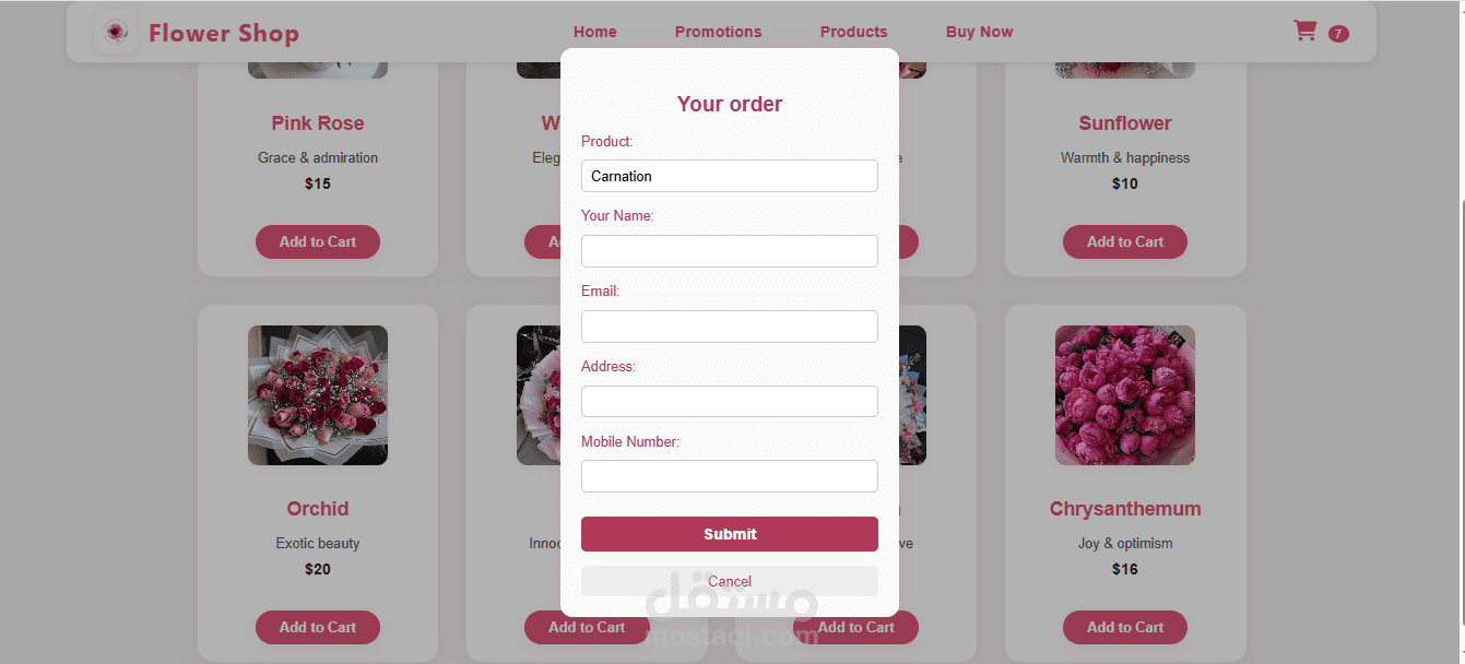نموذج طلب تفاعلي يتيح للعميل إدخال تفاصيل الطلب بسهولة:-