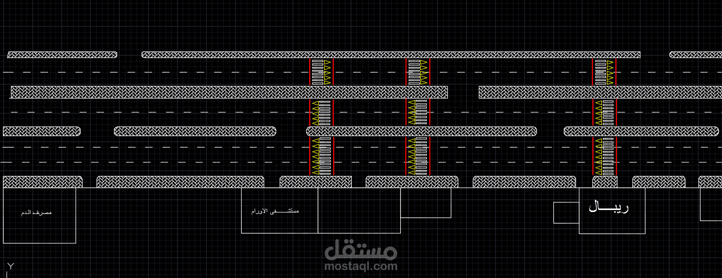 رسم طريق بواسطة برنامج autocad داخل المدينة موضح فيه مناطق العبور.