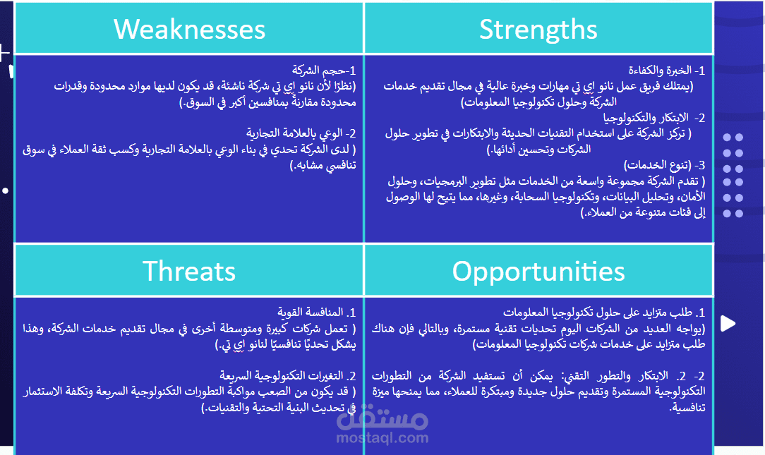 تحليل الوضع الحالي (SWOT – نقاط القوة والضعف والفرص والتهديدات)