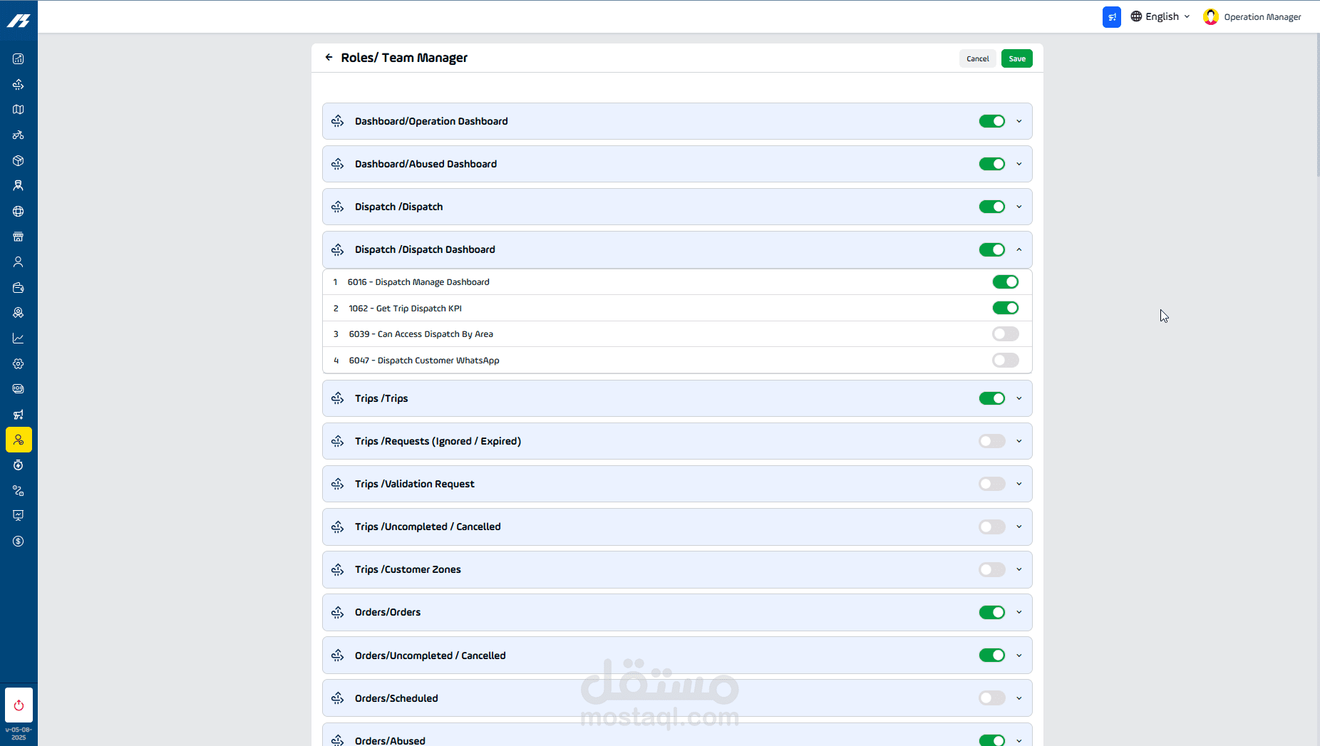 - إدارة الطلبات والرحلات في الوقت الفعلي مع إمكانية التحكم في الوصول حسب المنطقة أو الفرع