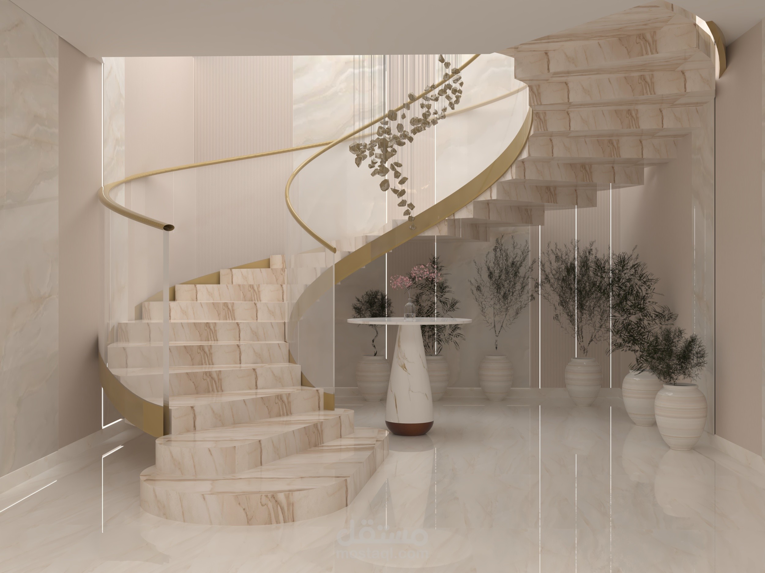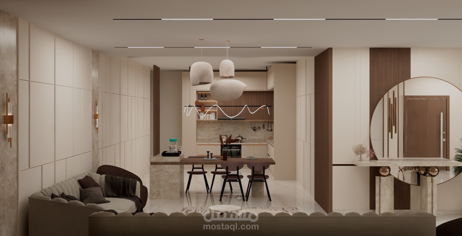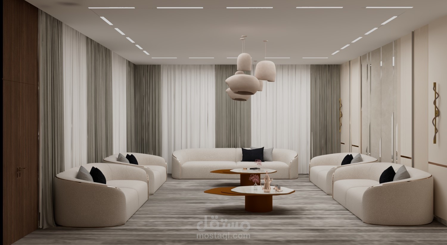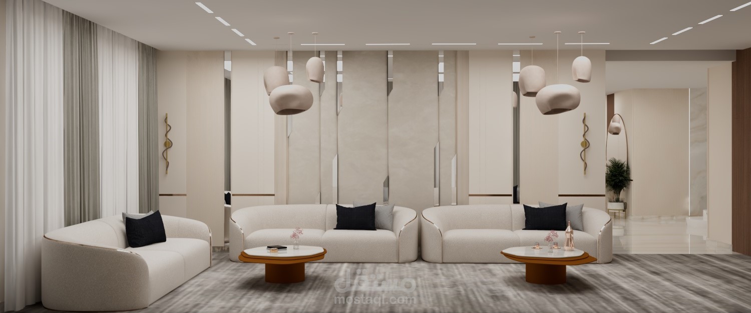 يتميز بتوفير المساحات الكبيرة للحركة المريحة وعدم الاكثار من الفرش بناء على رغبة العميل