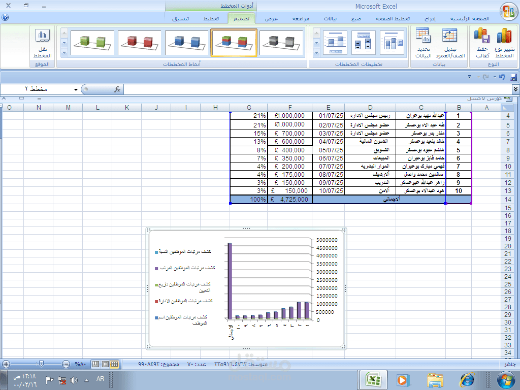 قمت بإعداد نظام لحساب رواتب الموظفين باستخدام Excel، يشمل إدخال البيانات وحساب الرواتب والخصومات تلقائيًا. كما حسبت نسبة كل راتب من إجمالي الرواتب باستخدام صيغ مئوية. استخدمت مهارات متقدمة في الصيغ والتنسيق لتحليل البيانات وإعداد تقارير مالية واضحة تساعد في اتخاذ القرار.