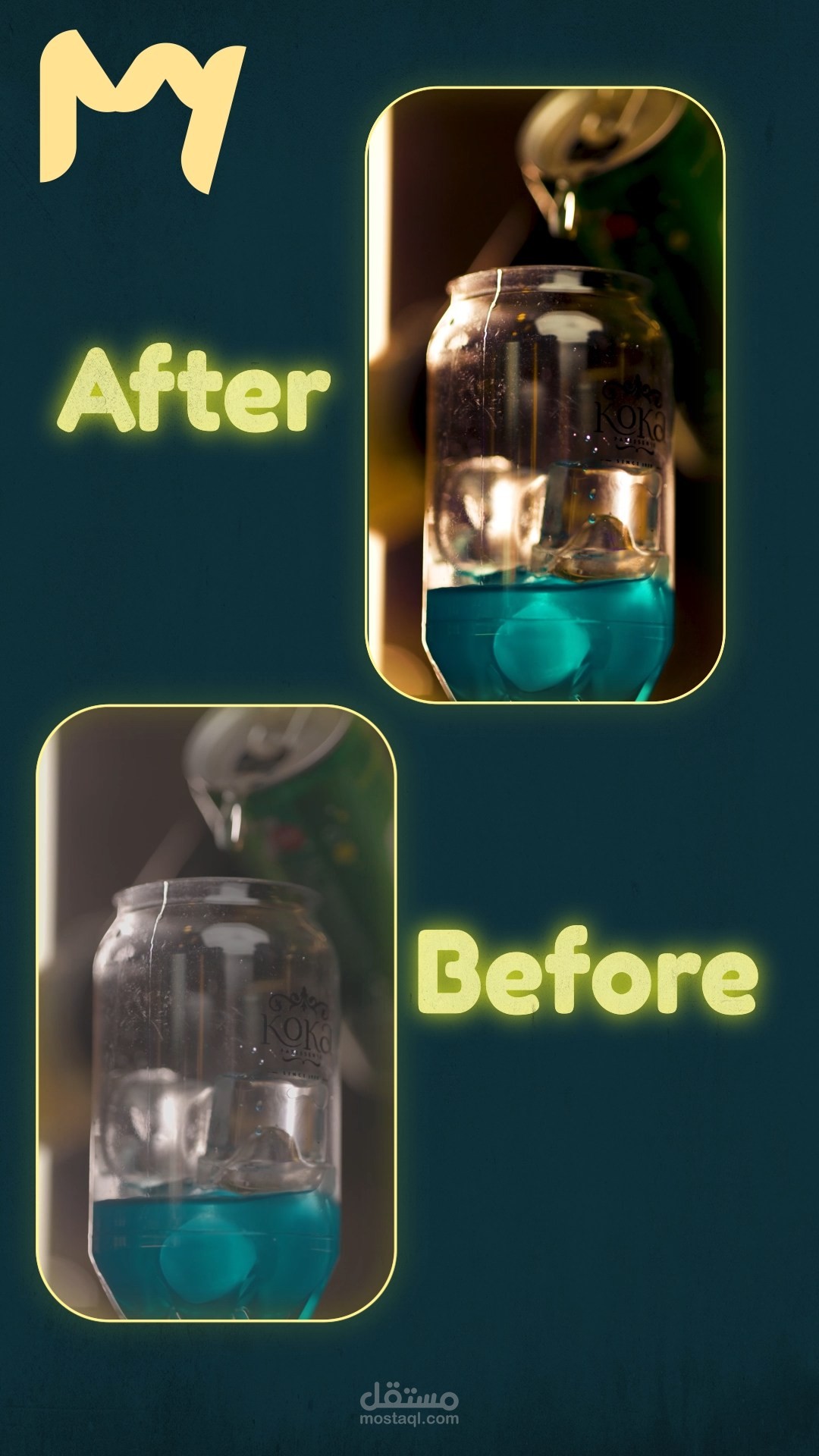 تصحيح ألوان وتلوين احترافي لإظهار تفاصيل المشروب بأفضل صورة.
