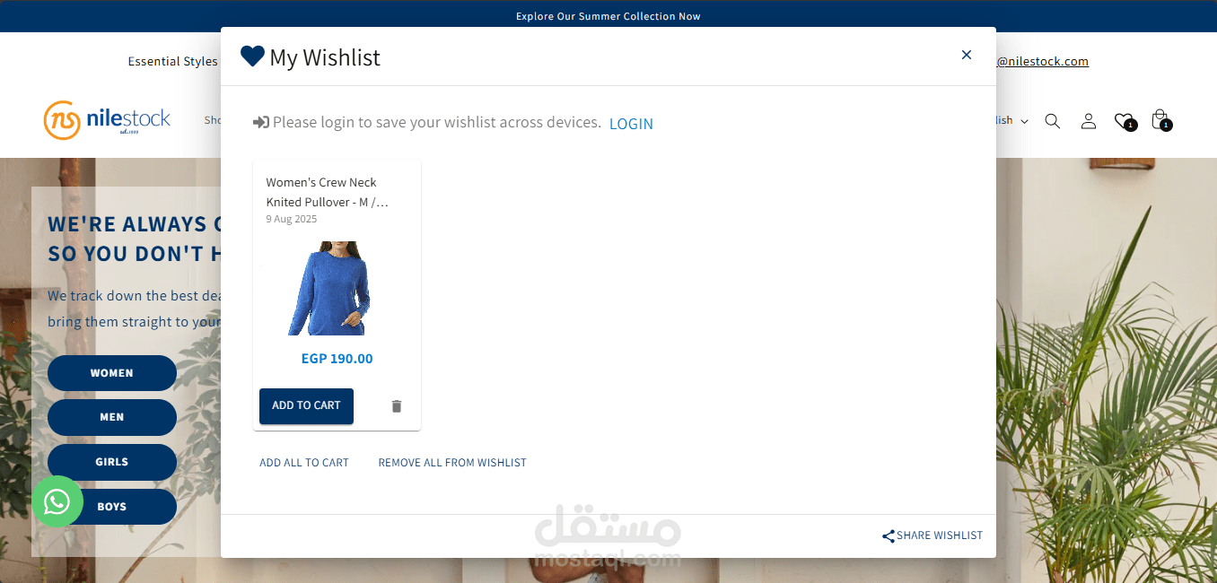 Nilestock – متجر إلكتروني للملابس (Shopify)