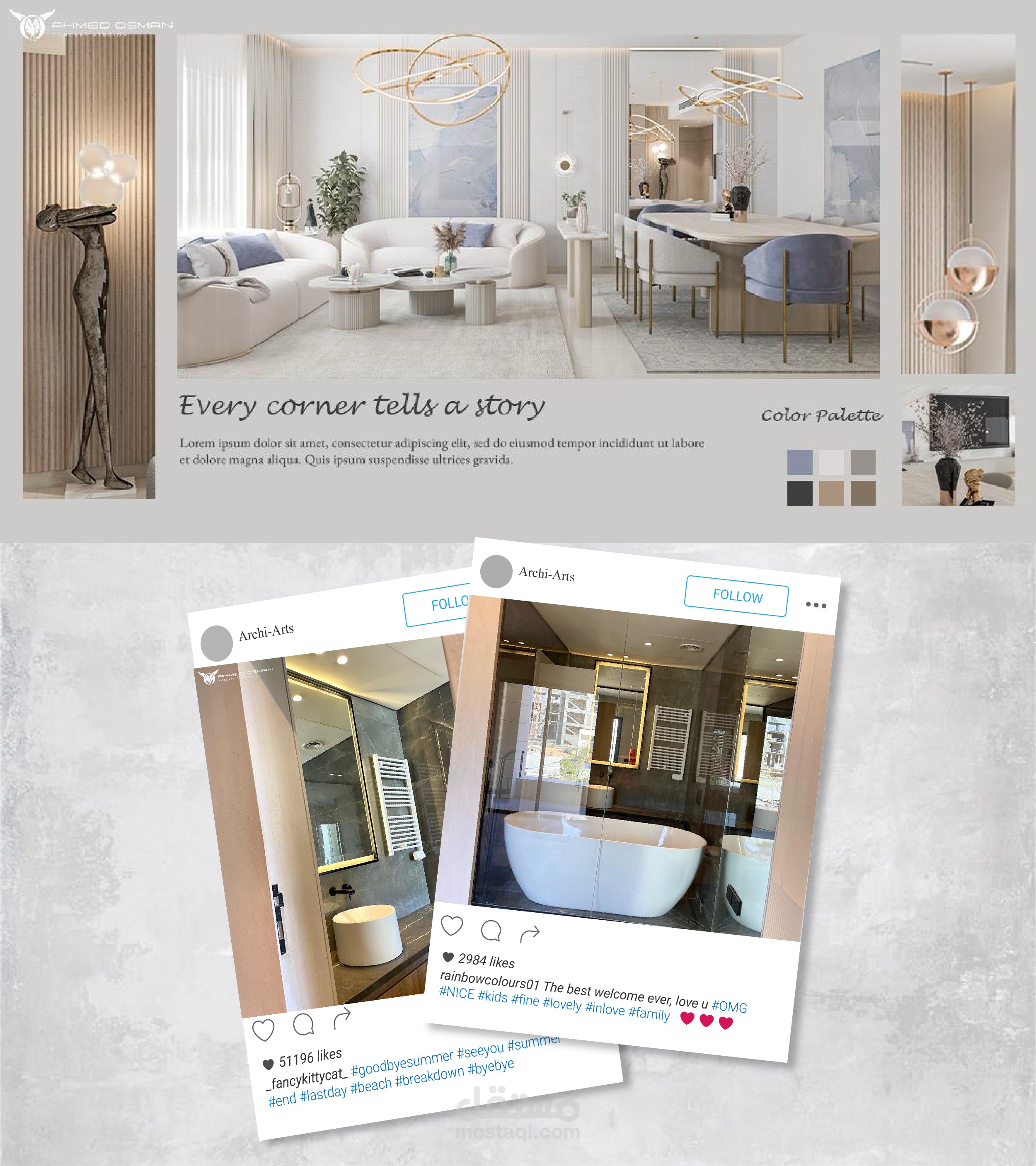 لشركة Archi-Arts الهندسية، صممت حزمة متكاملة من الأعمال تشمل: