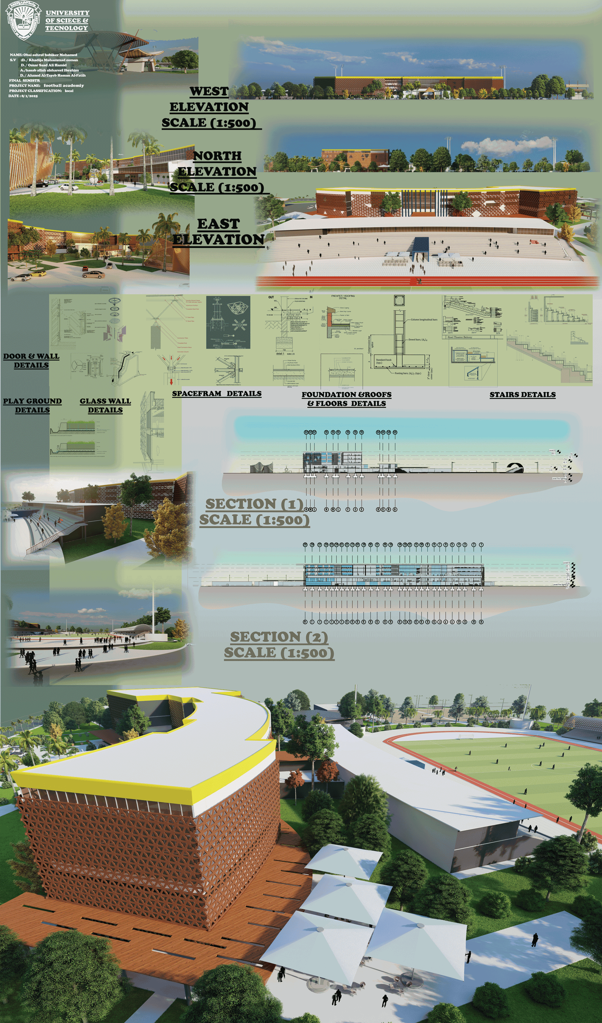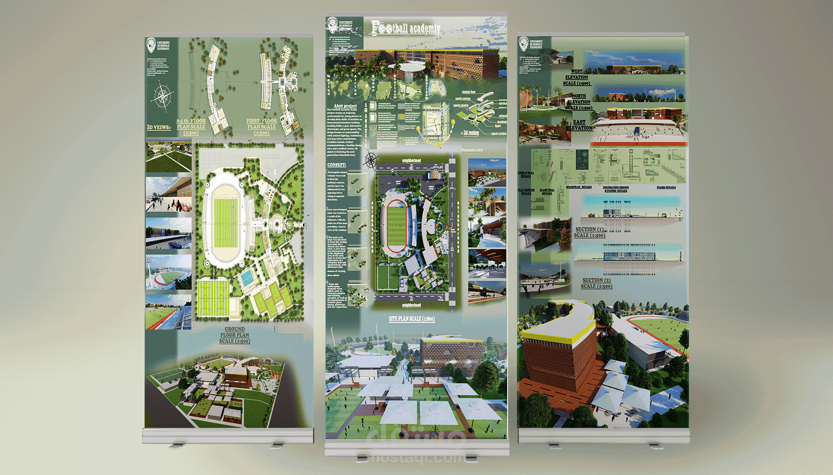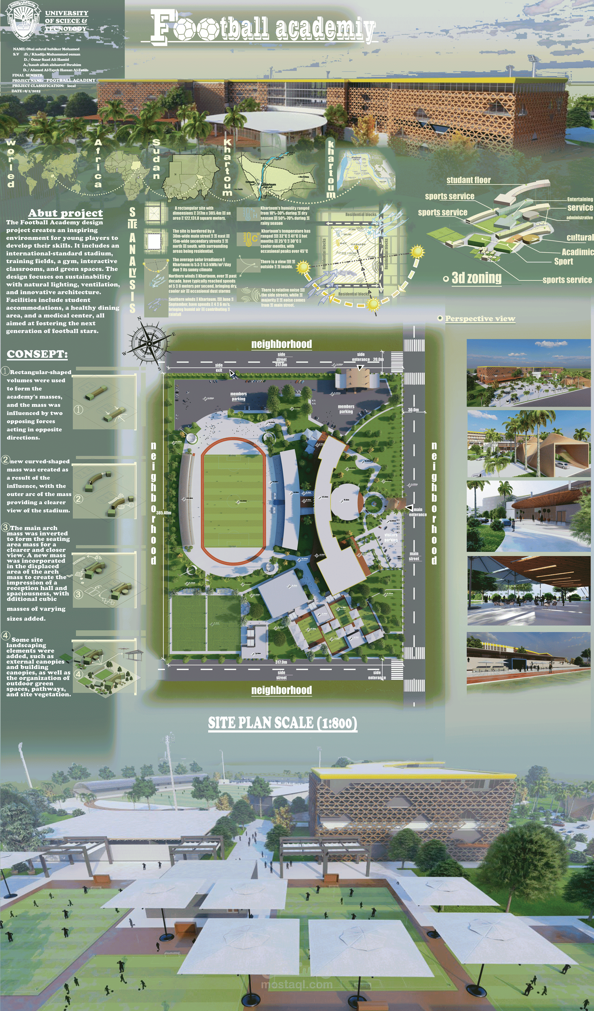 قمت بتصميم بوستر معماري لمشروع تخرج ياستخدام فتوشوب حيث بدات بعمل تحليل الموقع وانتقلت لعمل مخطط التنطيق ( ال zoning ) ... وعملت المتطلبات الهندسيه والكماليات للسايد بلان .. واظهر كل ال 2d سواء كان بلانات او مقاطع راسيه .. وعملت بوست برودكشن لكل الريندر شوت اللي بعتها العميل واستخدمت برنامج الريفيت واللوميون في الرندر لبعض الشوتات الرئيسيه العميل ما كانت عندو .. ودي النتيجه اللي طلعت معاي والعميل اعطوه B الحمدلله ..