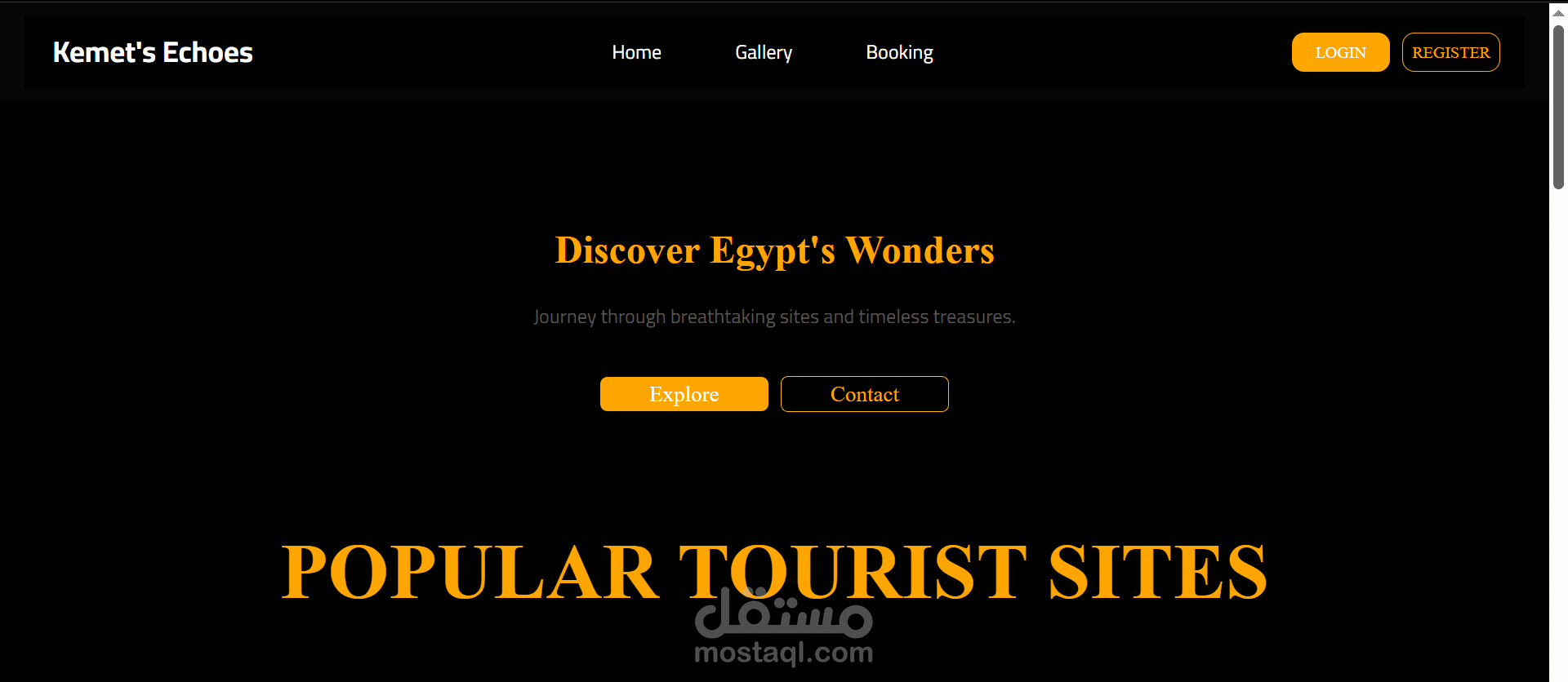 قمت بتصميم وتطوير واجهة موقع سياحي باسم Kemet's Echoes يسلط الضوء على المعالم السياحية في مصر.
