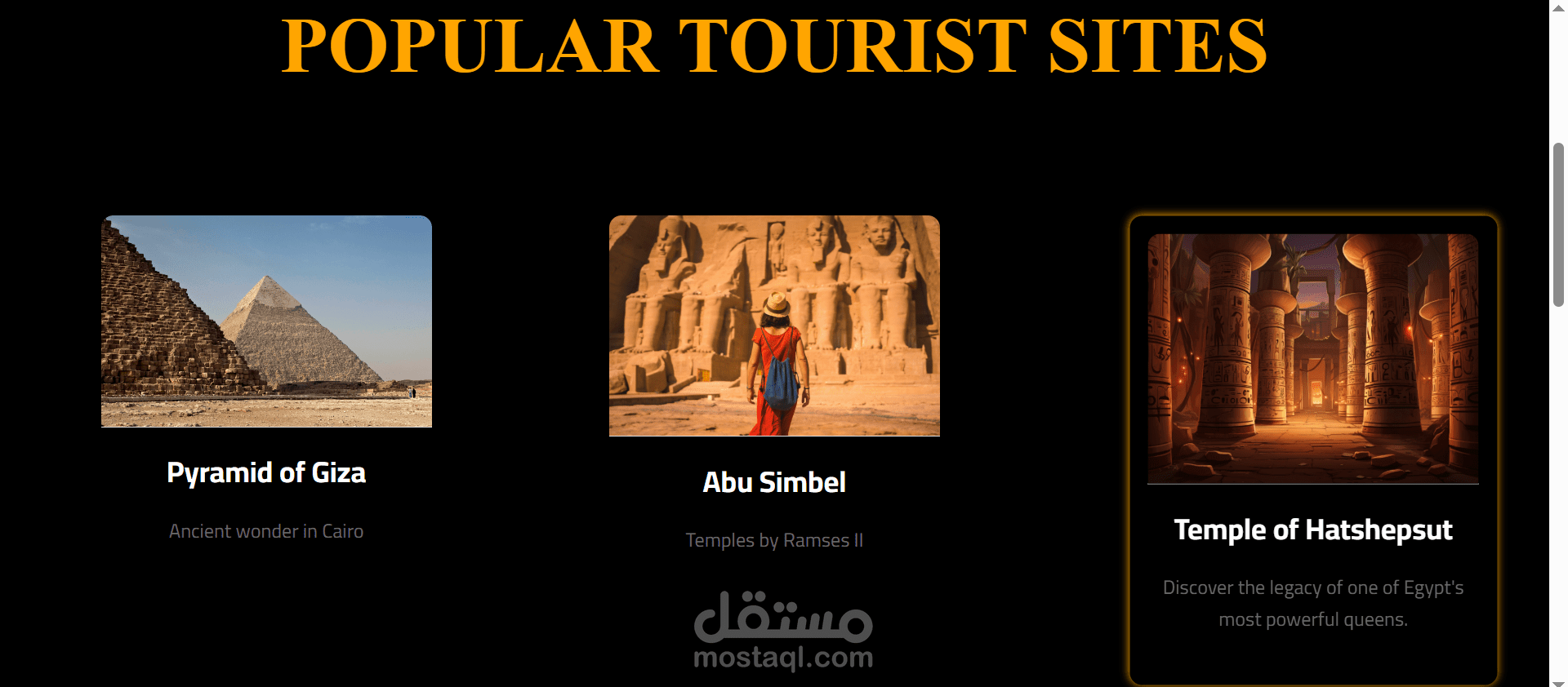 قسم المعالم السياحية بعنوان واضح وكبير Popular Tourist Sites لجذب انتباه الزائر واستعراض المحتوى السياحي.