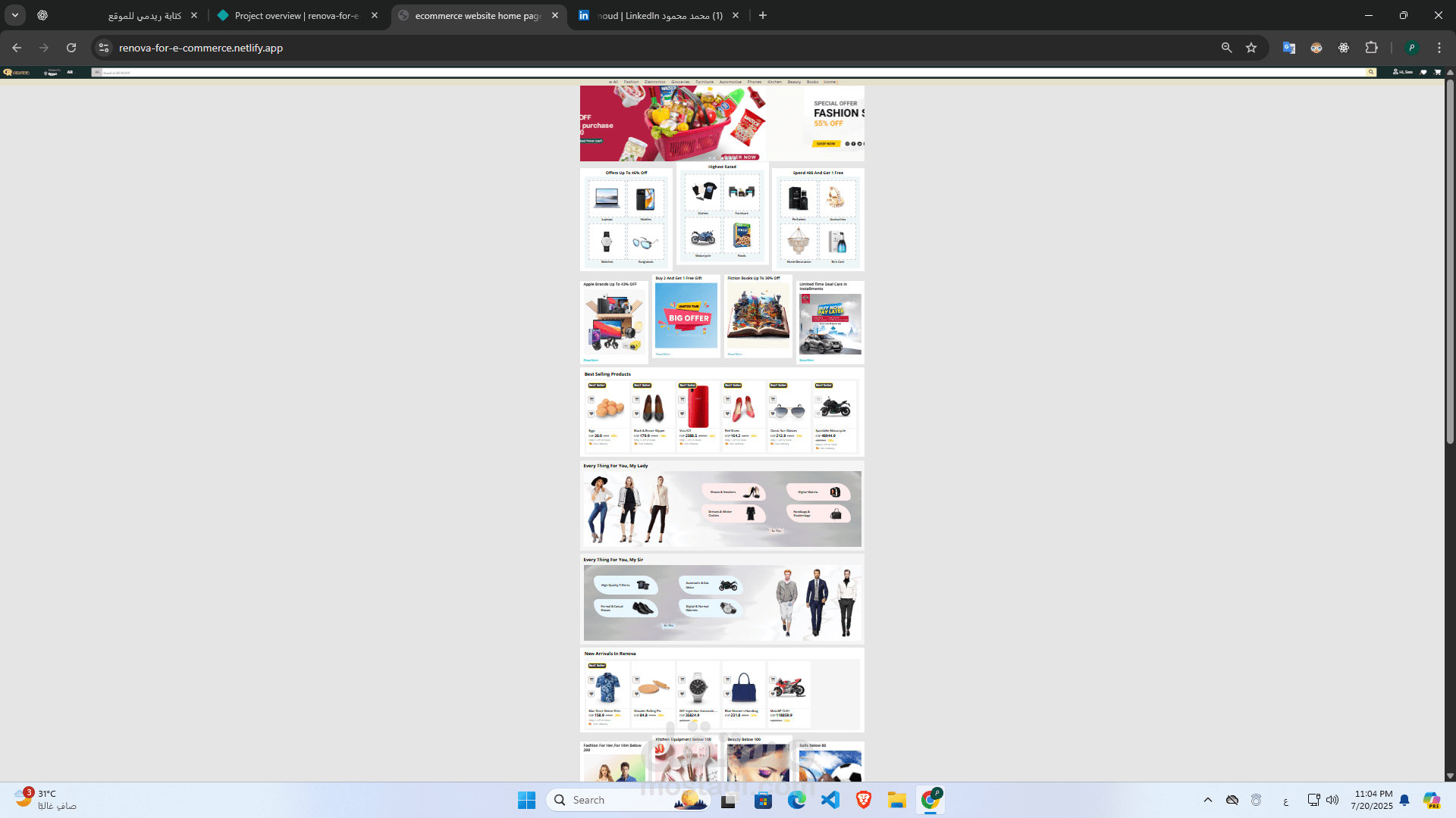 صممت وبنيت هذا الموقع باستخدام HTML وCSS وJavaScript فقط، بدون أي أطر عمل أو مكتبات خارجية، مع تصميم كامل للواجهة وتجربة المستخدم بما في ذلك: التنقل، صفحات المنتجات، تفاصيل المنتج، سلة الشراء، وعملية الدفع.