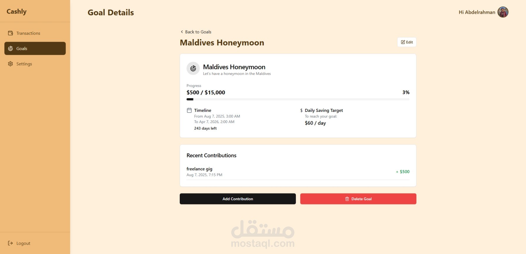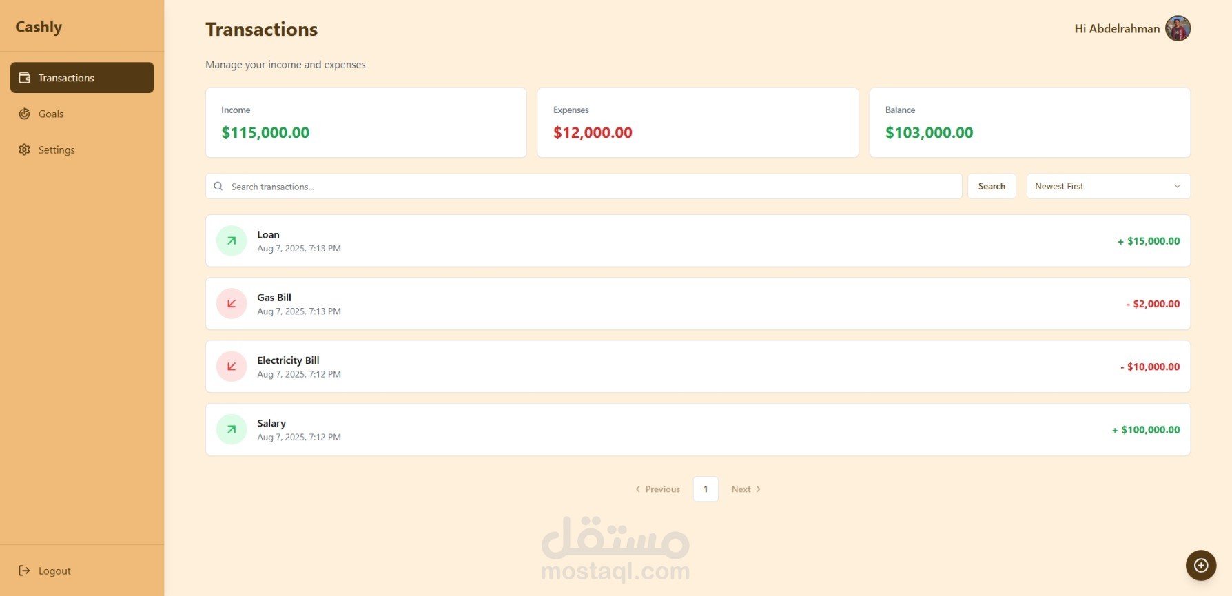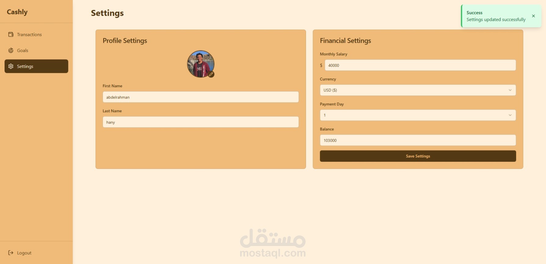 تطبيق ويب للتمويل الشخصي مُصمم باستخدام حزمة MERN لإدارة النفقات، وتتبع المدخرات، وتصور العادات. يُظهر نمذجة قواعد البيانات، وتكامل واجهة برمجة التطبيقات، وتصميمًا متجاوبًا.