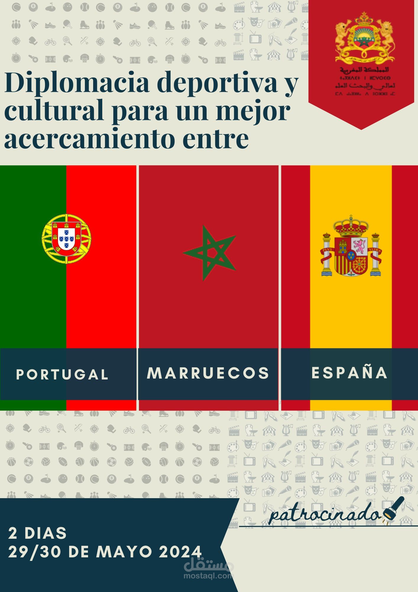 ترويج لحدث دبلوماسي ثقافي ورياضي يجمع البرتغال والمغرب وإسبانيا. باستخدام برنامج أدوبي فوتوشوب، صممتُ مفهومين بصريين مميزين لجذب جمهور واسع.