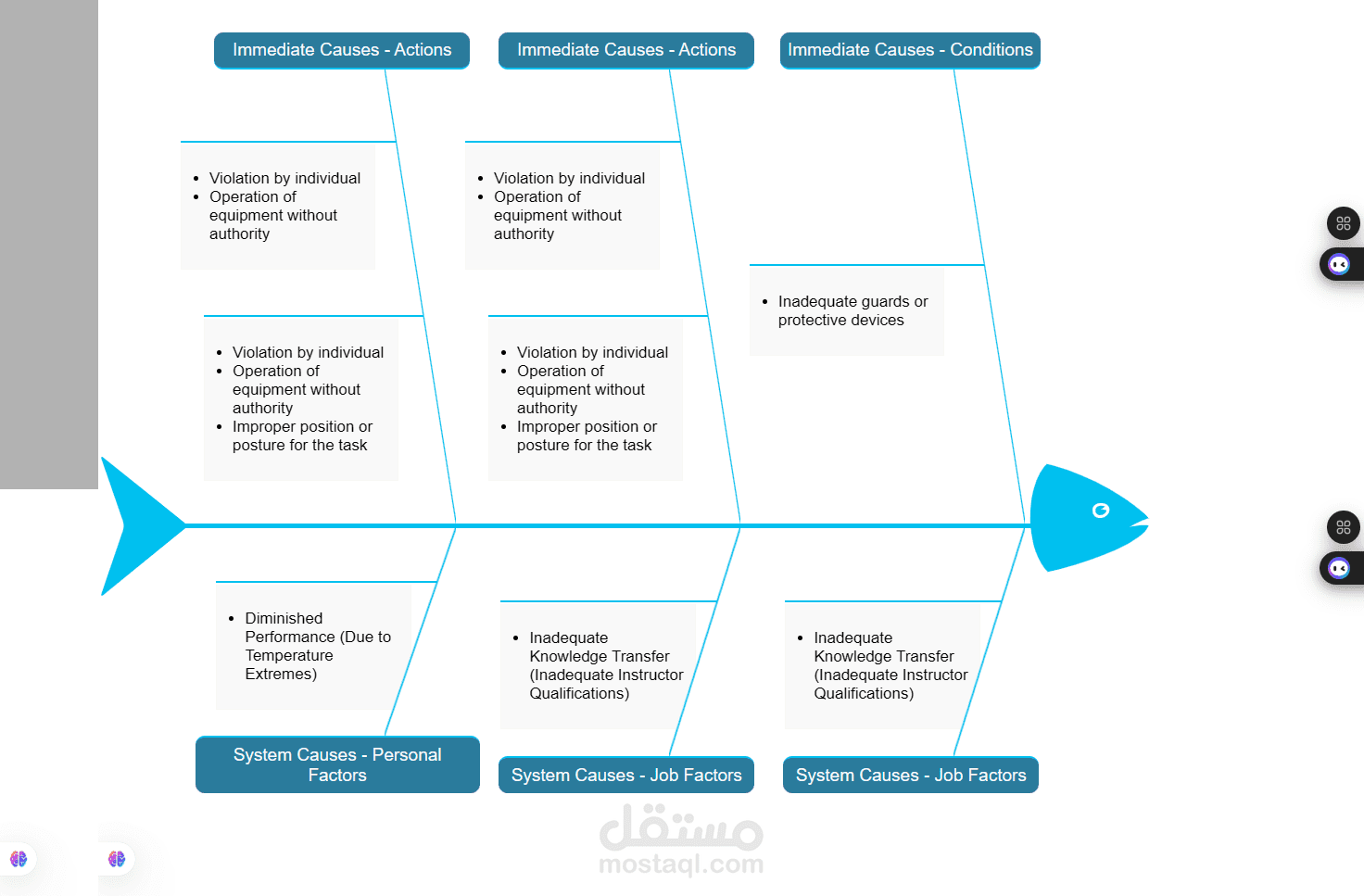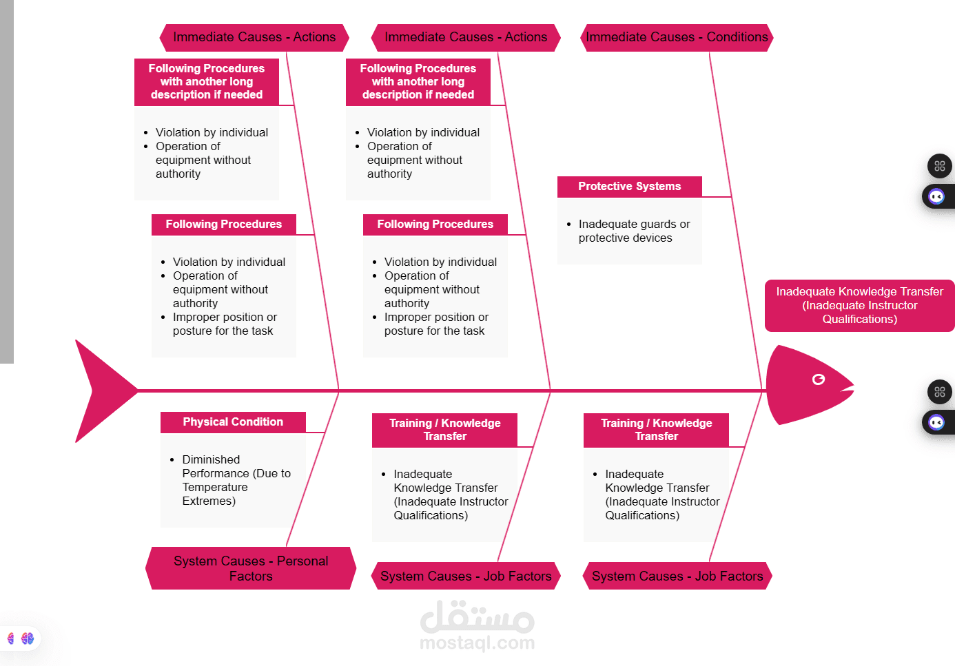 بناء و تطوير بلجن مخصص لاظهار مخطط Fishbone Diagram والذي يُشار إليه أحيانًا بمخطط السبب والنتيجة أو مخطط Ishikawa و هو أداة جودة تساعد المستخدمين على تحديد العديد من الأسباب المحتملة لمشكلة ما عن طريق تنظيم الأفكار في فئات مفيدة. المكتبة تدعم عدة تنسيقات وتحكم في مختلف الأجزاء من الDiagram.