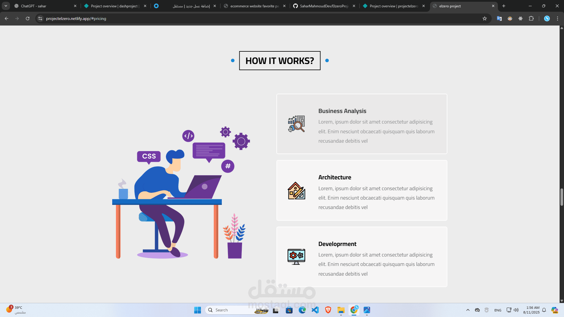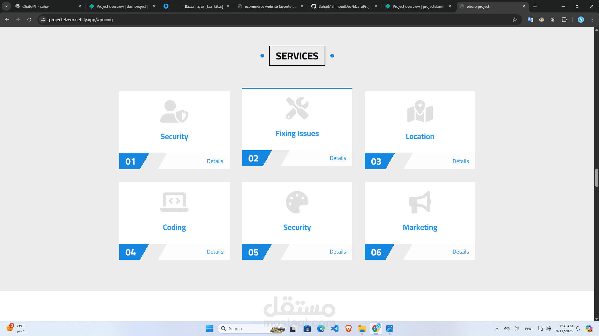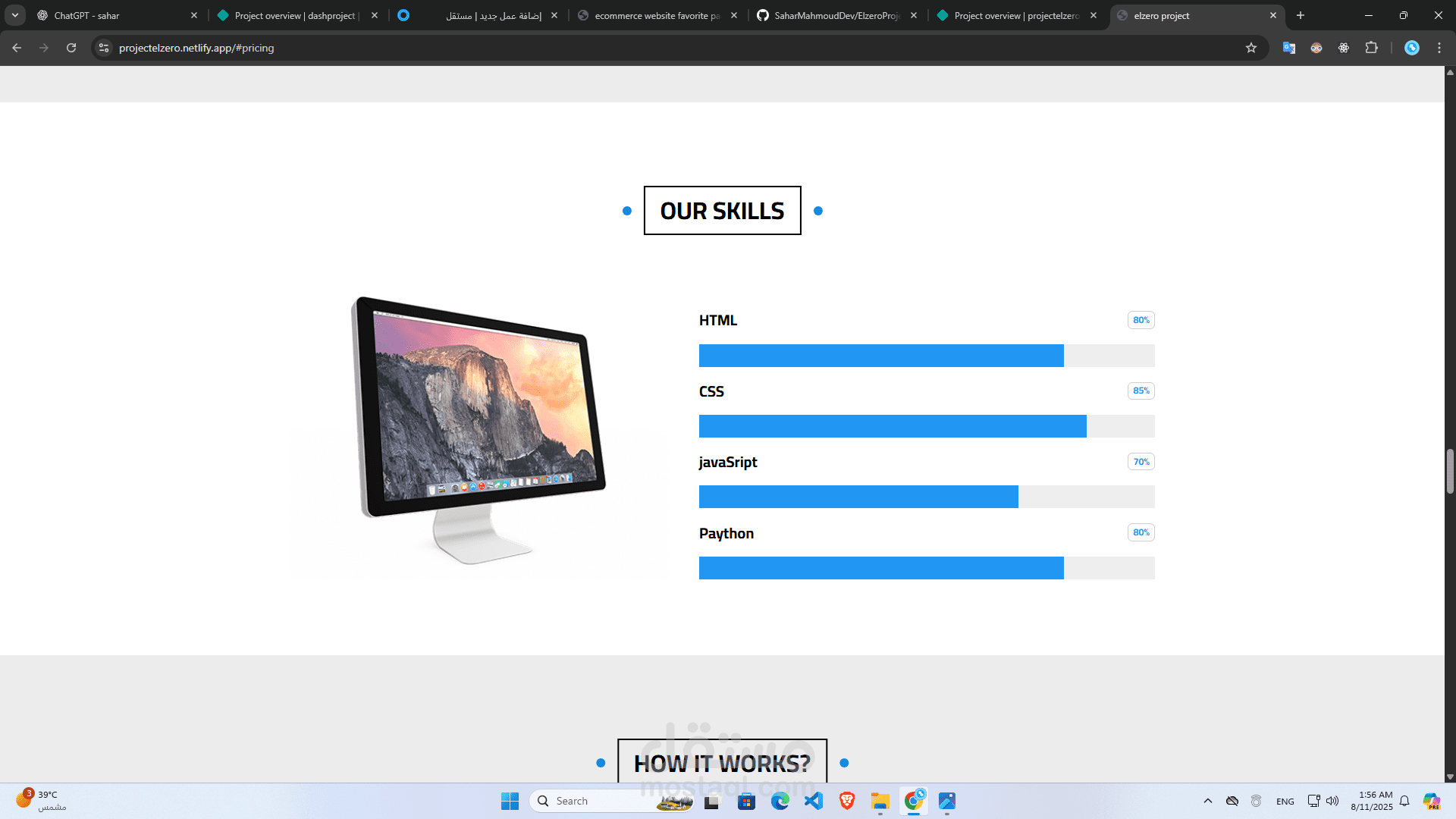 قالب مثالي لعرض خدماتك أو معرض أعمالك بطريقة احترافية، نظيفة وبسيطة باستخدام HTML5 وCSS3 وJavaScript.