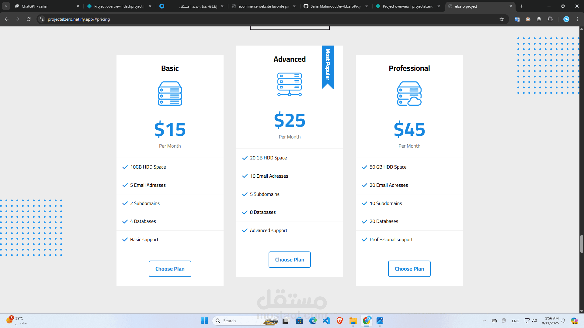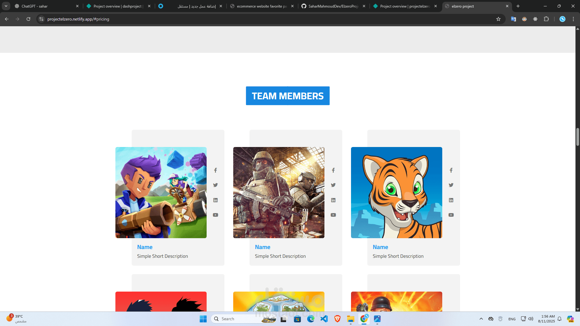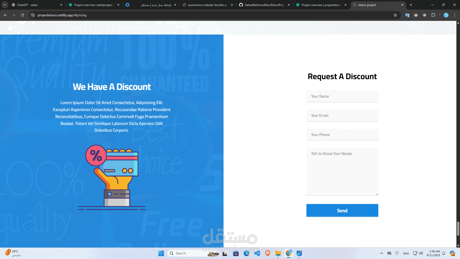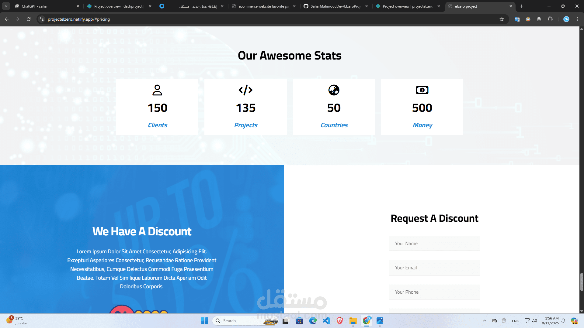 قالب مثالي لعرض خدماتك أو معرض أعمالك بطريقة احترافية، نظيفة وبسيطة باستخدام HTML5 وCSS3 وJavaScript.