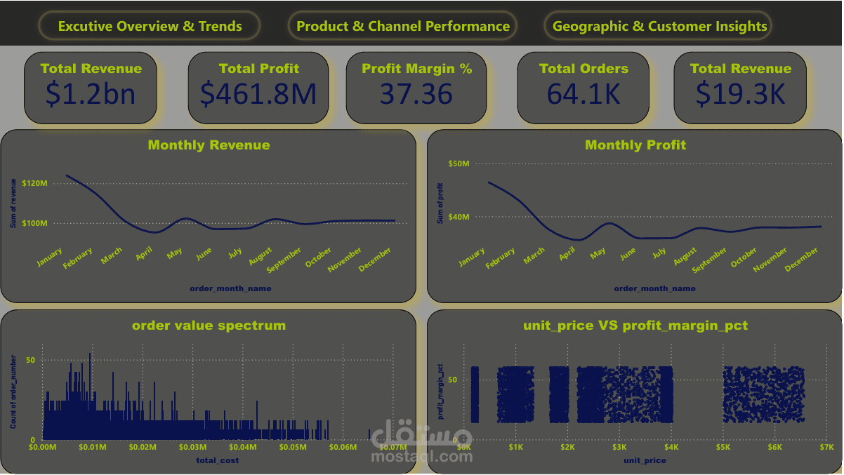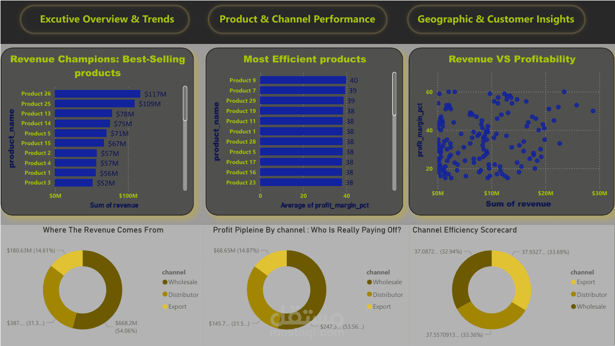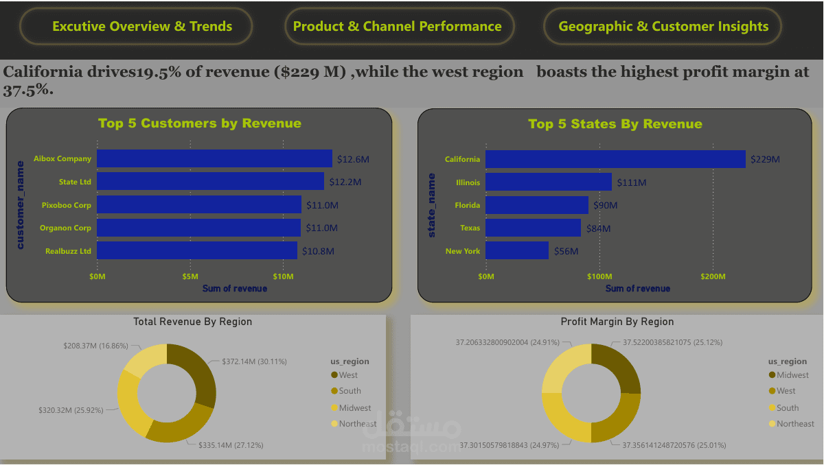 النتيجة الرئيسية: ساهمت المنطقة الشرقية بنسبة 45% من الإيرادات، ولكن هوامش الربح كانت أقل مقارنةً بالمناطق الأخرى.