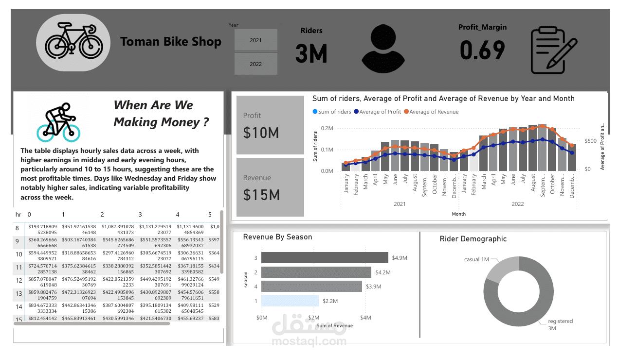 ركز التحليل على التركيبة السكانية للركاب، والأنماط الموسمية، والربحية في مختلف ساعات العمل وأيام الأسبوع.