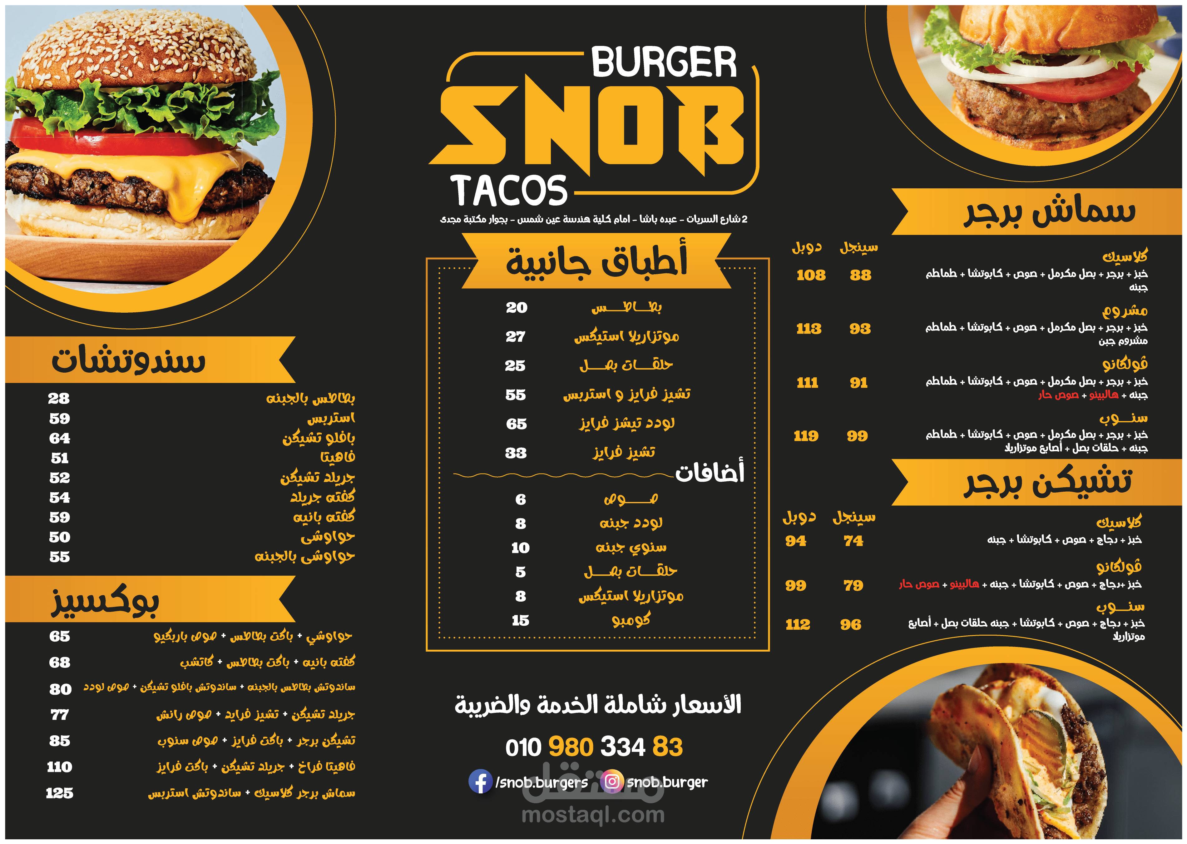 تصميم منيو وبوستر لمطعم SNOB Burger & Tacos