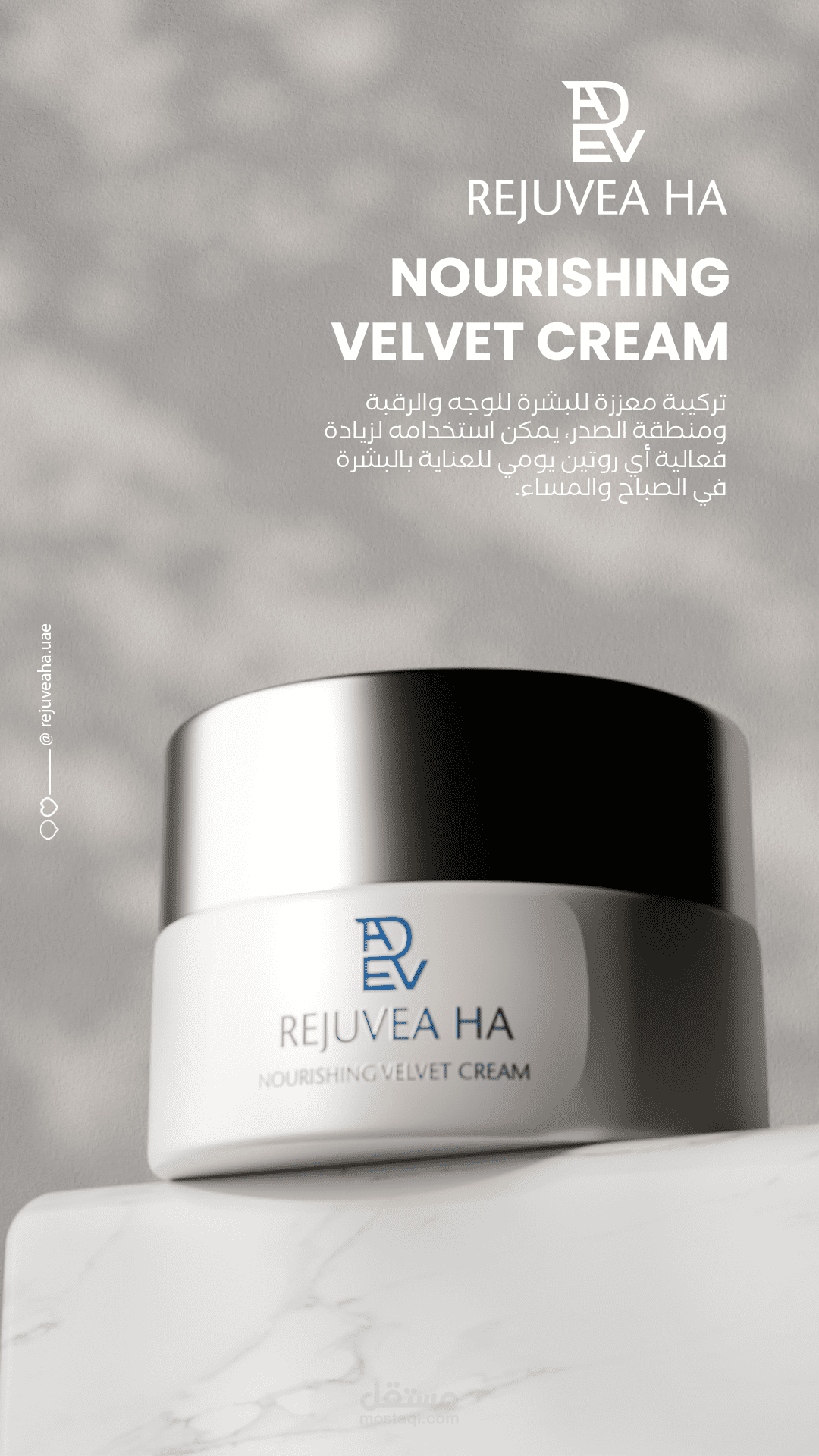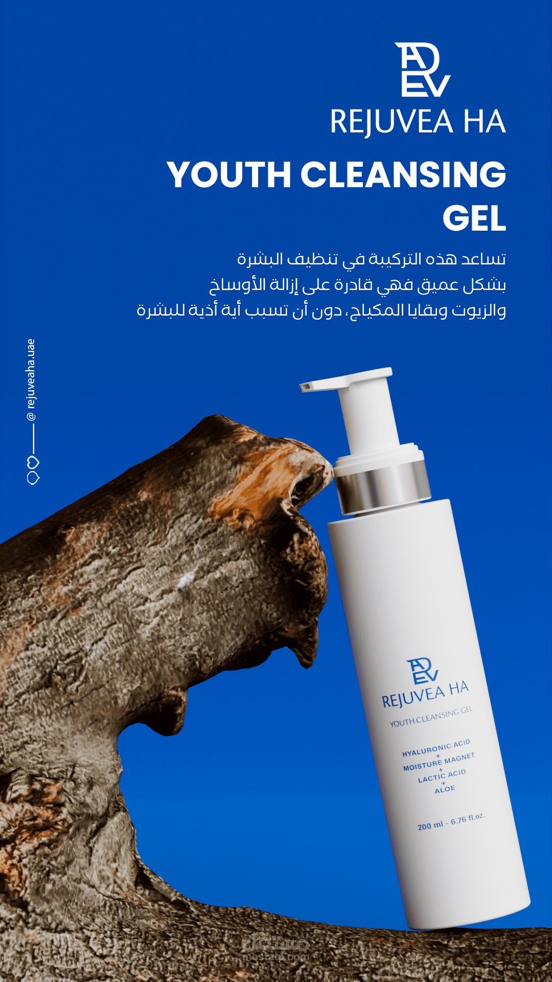 إبراز المنتج في مركز التصميم مع إضافة عناصر طبيعية (زهور – أوراق) لزيادة الإحساس بالنقاء.