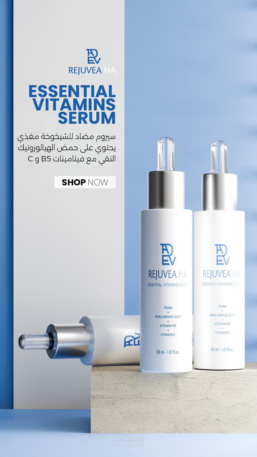تصميم منشور إعلاني احترافي لمنتجات العناية بالبشرة، بأسلوب أنيق ومرتب يعكس هوية العلامة التجارية ويجذب الجمهور المستهدف.