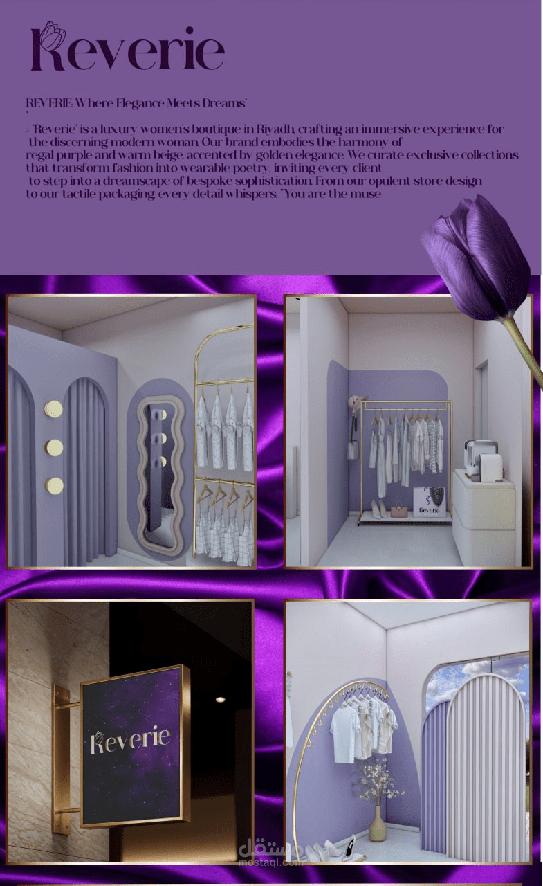 هوية "Reverie" ليست مجرد ألوان وشعار؛ إنها **قصة بصرية تُحاكي تطلعات المرأة**، ووعدٌ بتجربة تسوق استثنائية. التصميم يجمع بين العمق النفسي للألوان والفهم الدقيق للجمهور المستهدف، لخلق حضورٍ مميزٍ يترسَّخ في الأذهان ويجذب العملاء من اللحظة الأولى.