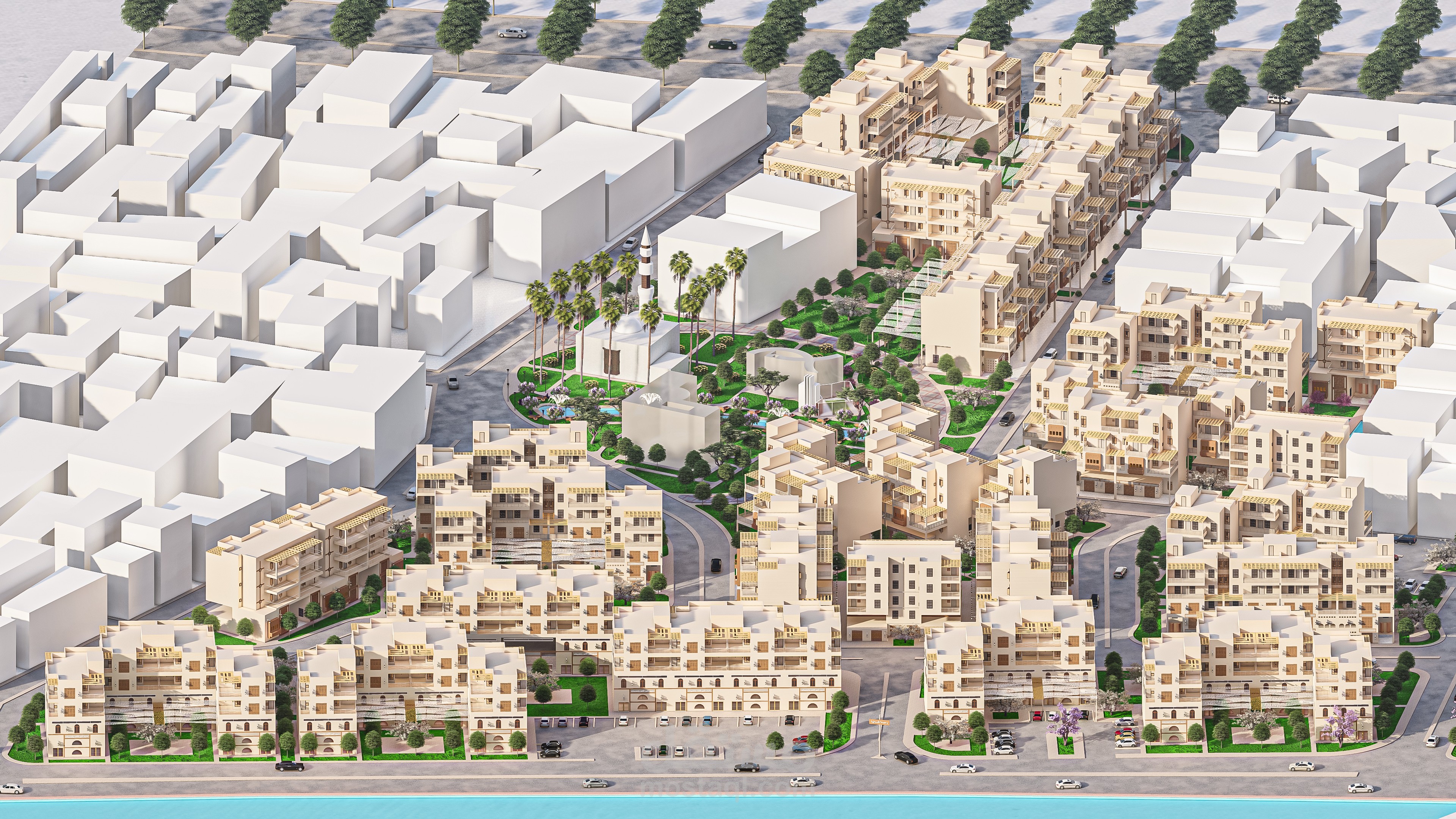 تطوير مدينة السنانية بمحافظة دمياط الجديدة في مصر, وشمل التطوير تعديل تخطيط المباني السكنية والحرفية مع الاهتمام باللاندسكيب الخاص بالمنطقة والاهتمام بالخدمات