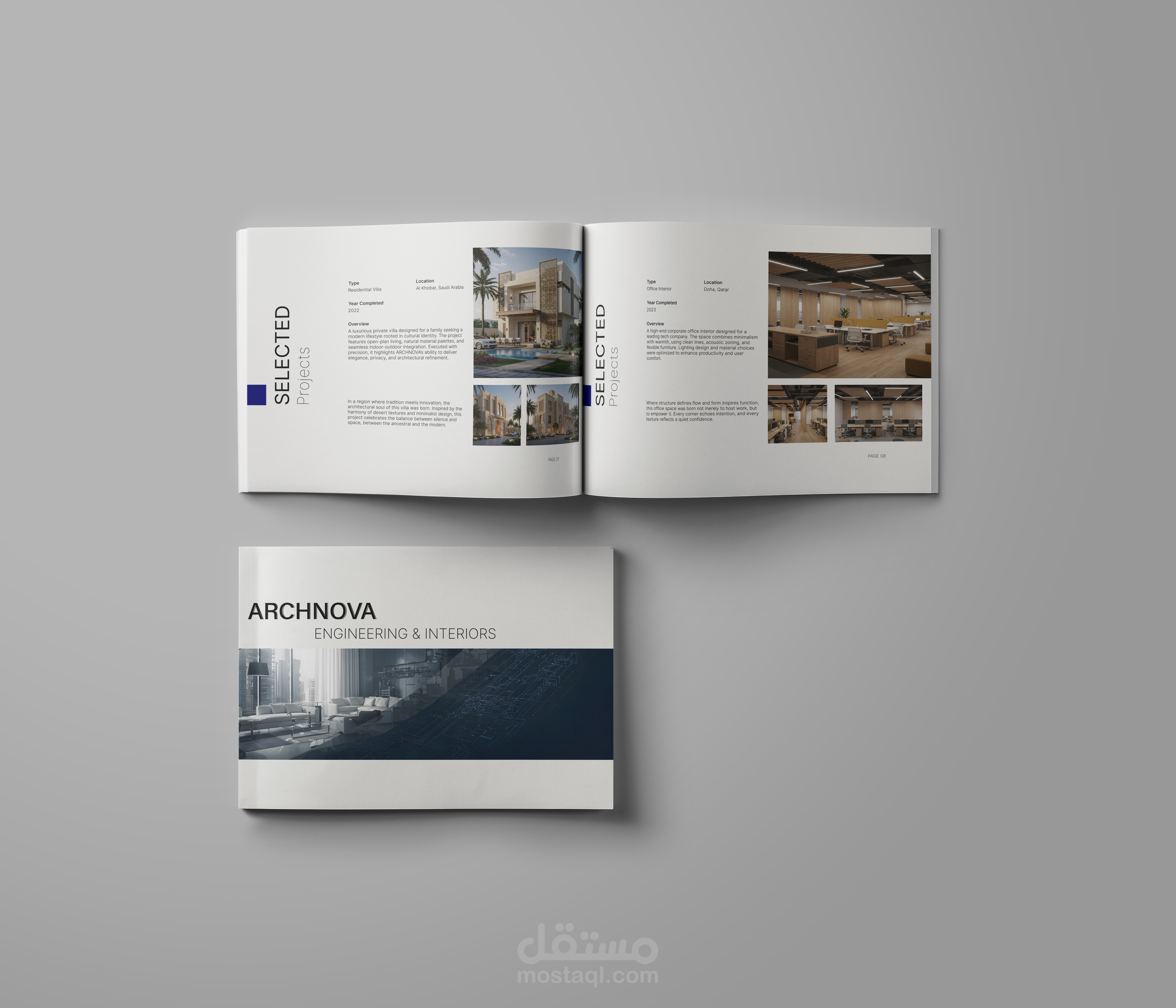 تم إعداد هذا العمل بأسلوب فاخر واحترافي يليق بشريحة العملاء المتميزة التي تخدمها الشركة، ليكون أداة تسويقية قوية قادرة على التعبير عن مكانة ARCHNOVA كأحد أبرز الأسماء في قطاع العقارات، الهندسة، والتصميم الداخلي في المنطقة وما وراءها.