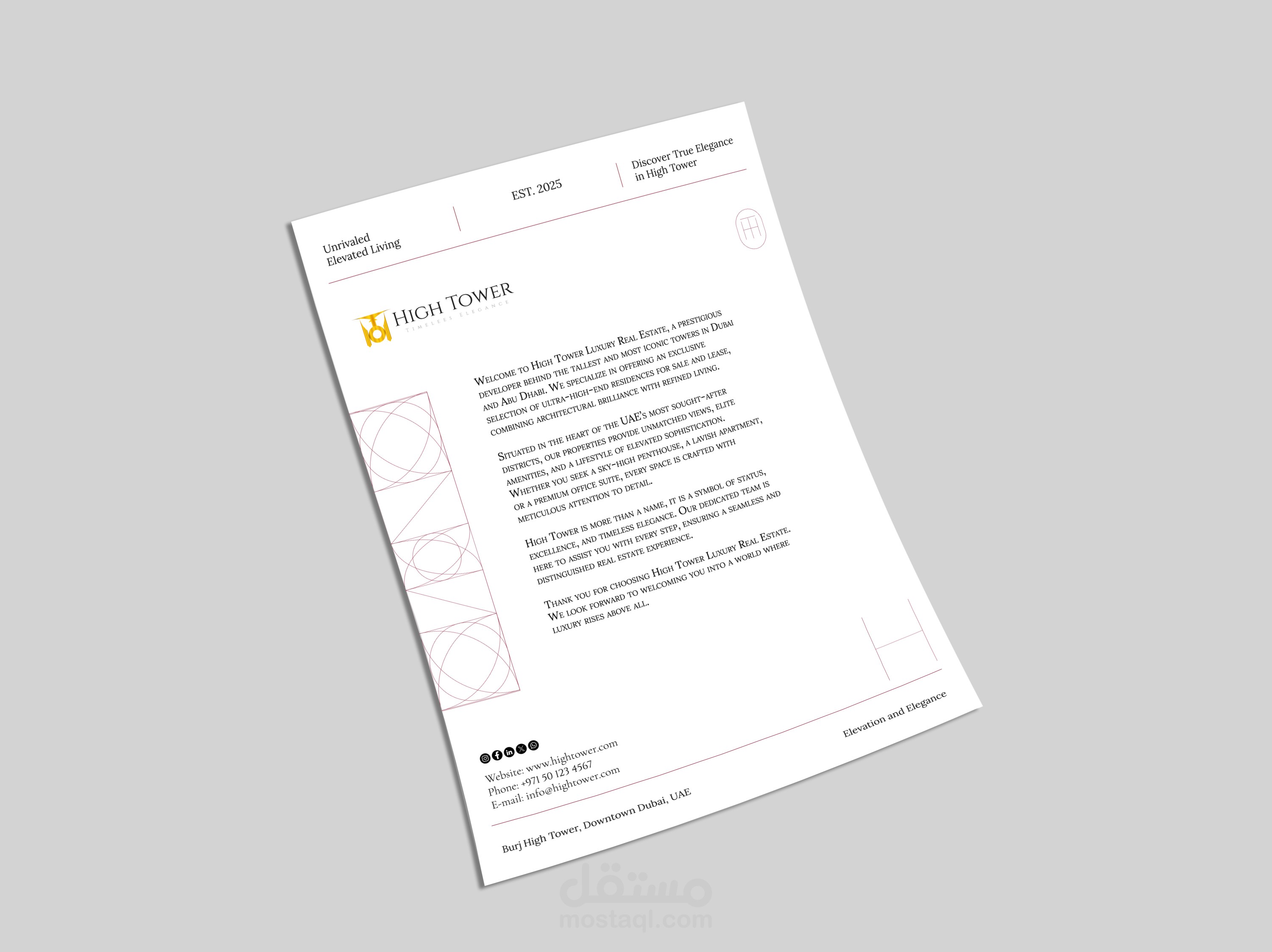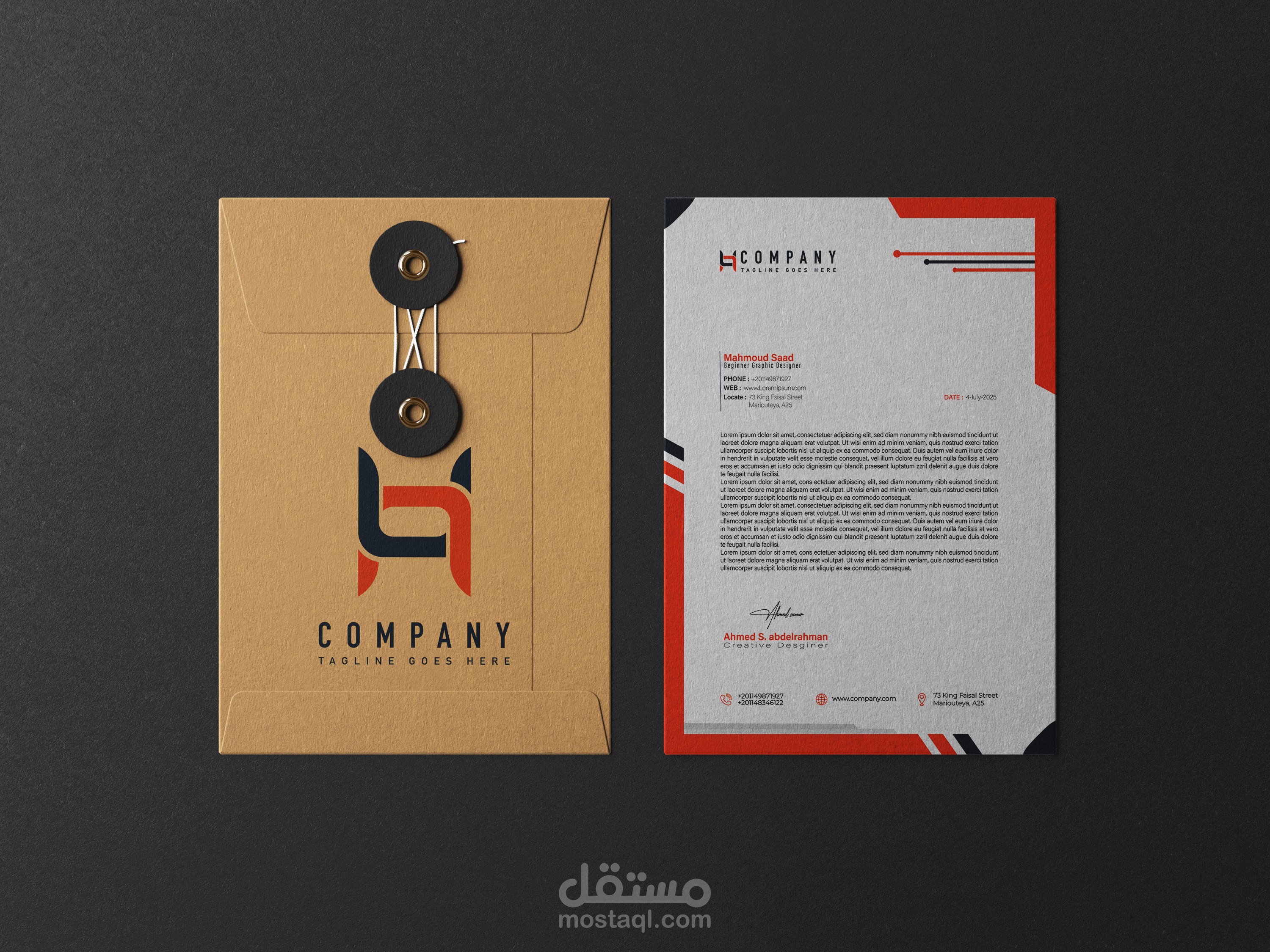 تصميم مجموعة متكاملة من الأدوات المكتبية )Stationery Design( بأسلوب احترافي يعكس هوية بصرية متناسقة وراقية. تشمل المجموعة: بطاقة العمل )Business Card(، ورق المراسلات )Letterhead(، ظرف المراسلات )Envelope(، فولدر، مذكرات، وأدوات مكتبية أخرى، مع توظيف ألوان الهوية والخطوط المعتمدة، وضمان الاتساق البصري بين جميع العناصر. التصميم يعكس احترافية العلامة التجارية ويعزز حضورها القوي في التواصل البصري مع العملاء والشركاء