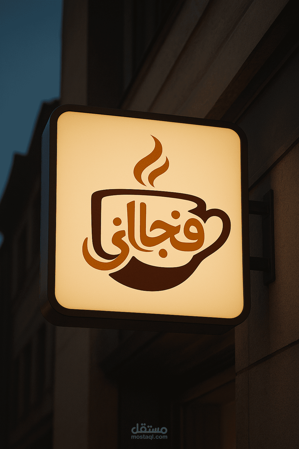 يتميز بخط عربي أنيق مدمج داخل تصميم فنجان قهوة مع بخار يتصاعد برشاقة.