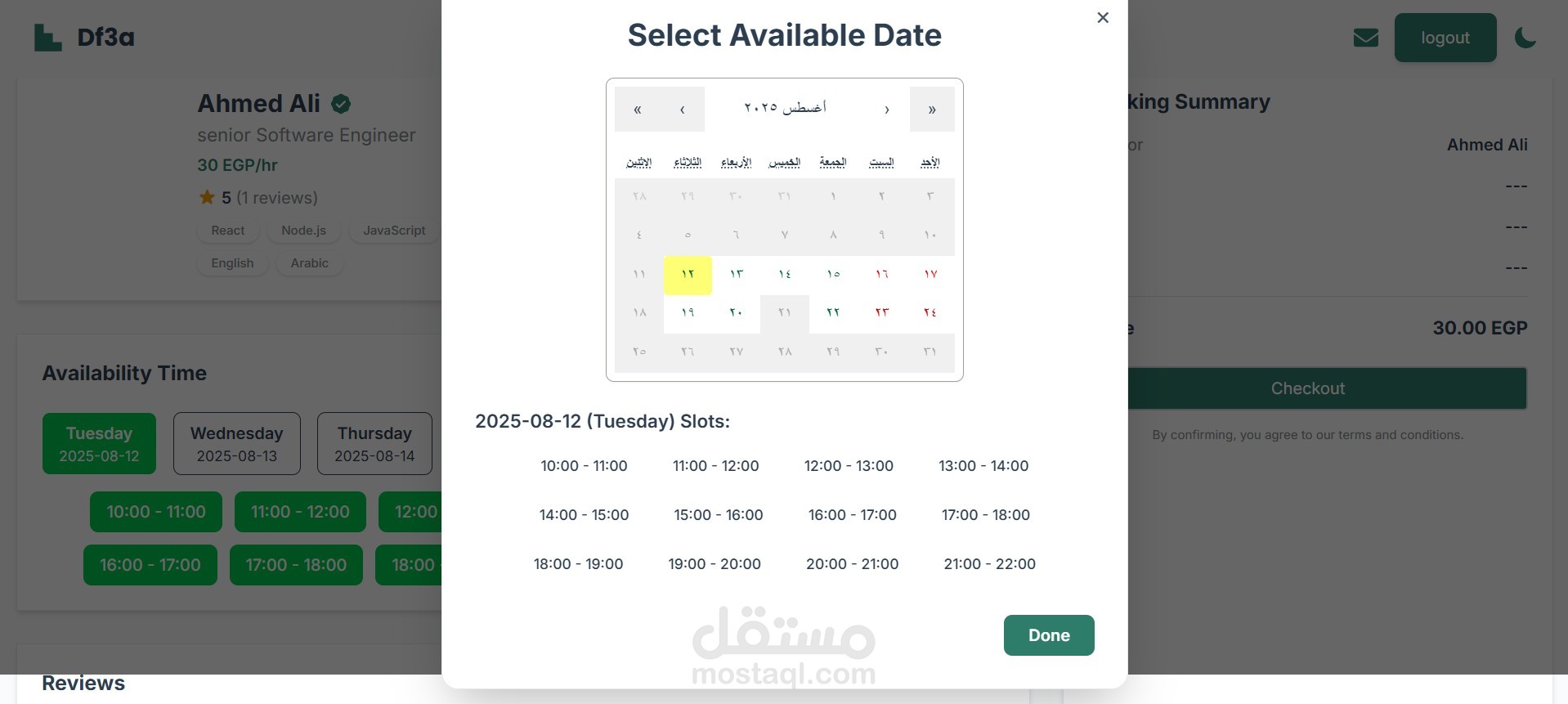 حجز الجلسات وإلغاؤها مع استرداد المدفوعات
