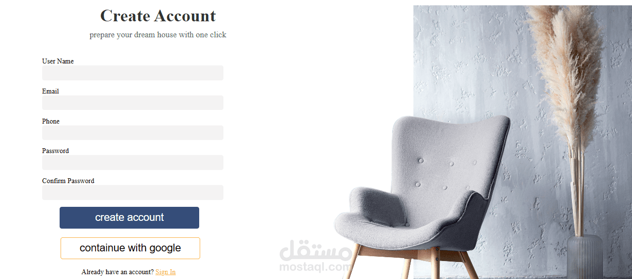 يحتوي الموقع على نماذج تسجيل دخول وتسجيل حساب جديد (Sign In & Sign Up) لتوفير تجربة مخصصة لكل مستخدم، مع تصميم واجهة سهلة الاستخدام ومتجاوبة مع جميع الأجهزة والشاشات.