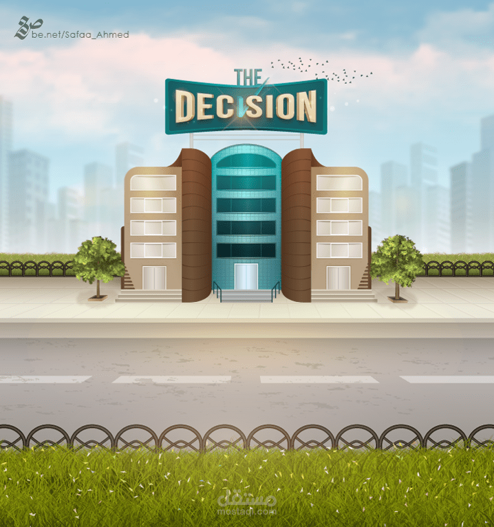 مشروع لعبة القرار أندرويد و ios .. كان طلب العميل أن يكون رسم الفيكتور واقعي قدر المستطاع وتم العمل بناء على ذلك باستخدام برنامجي اليستريتور وفوتوشوب رسم كامل ما عدا (السحب في السماء في صورة ناطحات السحاب + صورة المدينة خلف الزجاج في رسم المكتب) ما عدا ذلك رسم.