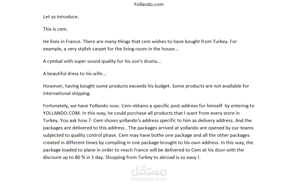 This video is talking about Yollando.com ; a shopping website in Turkey, you can order anything you want and it is shipped to your address after you have already registered before.